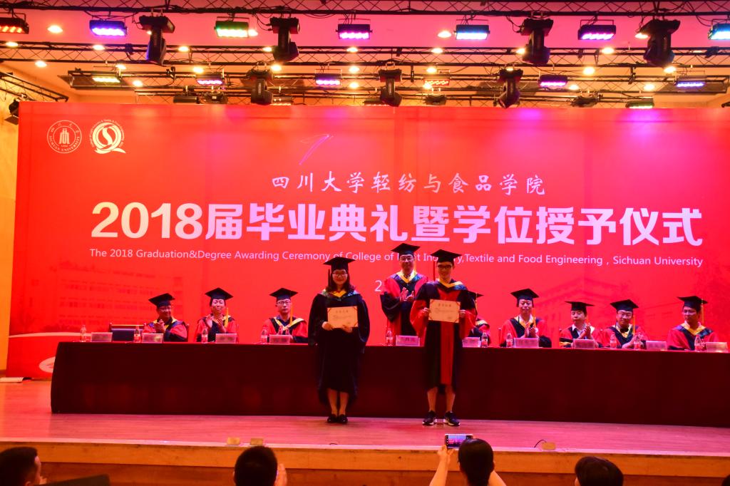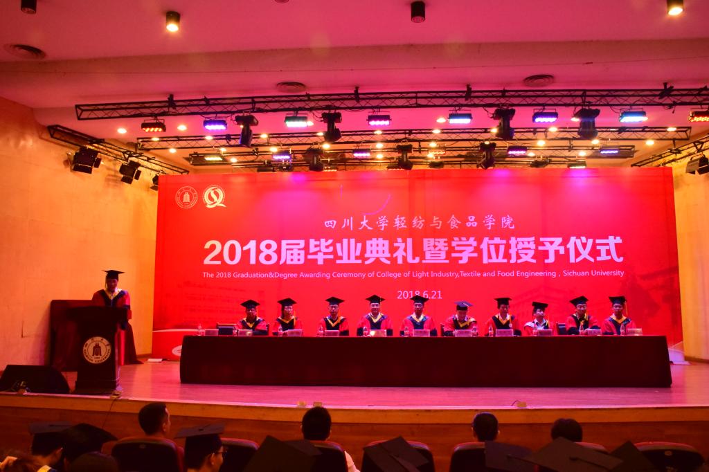 On the evening of June 21, 2018, the 2018 graduation and awarding ceremony of college of Light Industry, Textile & Food Engineering in Sichuan University was held in the concert hall on the second floor of the wenhua activity center.