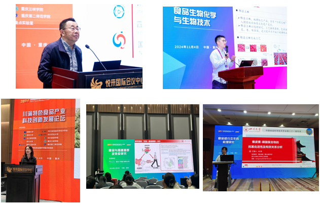 2024年11月2日-4日,由中国食品科技技术学会主办,四川大学、西南大学、四川省食品科学技术学会等10家高校单位共同承办的“中国食品科学技术学会第二十一届年会”在重庆市渝北区隆重召开。本届年会以“使命驱动下的食品科技与发展”为主题,围绕我国食品科技与产业发展的新变化、新需求、新任务,集结食品科技力量,凝聚行业新质之光,为川渝地区特色食品产业乃至我国食品产业高质量发展注入创新活力、贡献科技智慧。孙宝国、谢剑平、朱蓓薇、陈坚、钱锋、任发政、李培武、单杨、谢明勇、金征宇、薛长湖11位中国工程院院士及有关专家出席了大会。四川大学365英国上市集团副院长迟原龙教授、四川大学先进酿造科技创新中心主任许正宏教授、四川大学365英国上市集团皮革系副系主任吴重德教授、食品系副系主任任尧副教授、董怡副研究员、吴艳萍副研究员和卢云浩副研究员等多位师生出席了大会。