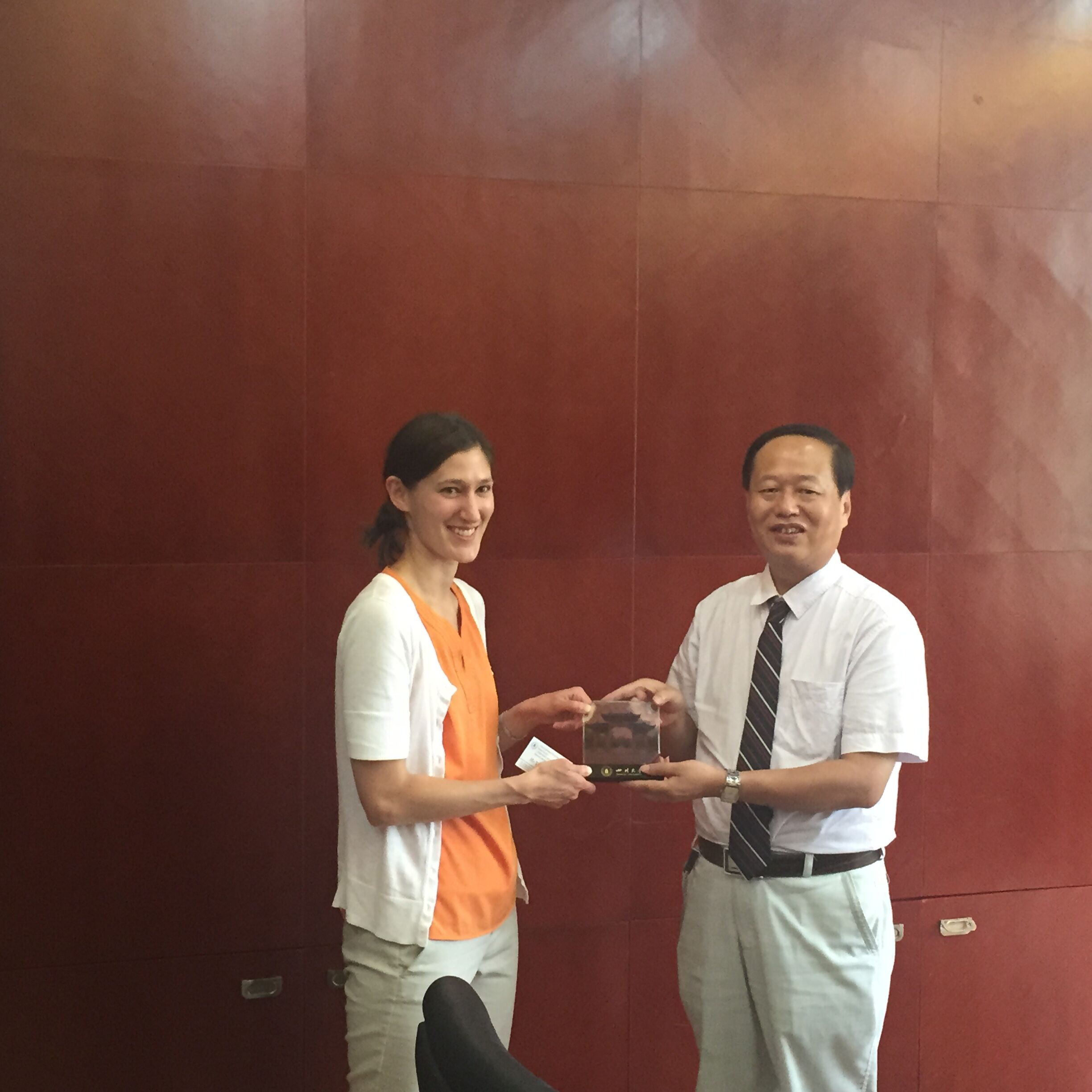 我院院长何有节教授向Jessica赠送礼物