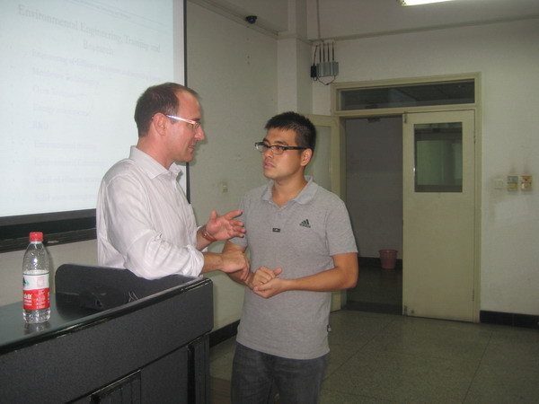2013年9月18日,Wolfram Scholz 博士在望江校区参加了生物质与皮革工程系2013级新生入学教育活动,并与2013级部分同学进行了2个多小时的交流和座谈。 Wolfram Scholz博士在我校期间从事本科生、研究生教学和科研工作,参与所在学科及专业的建设。