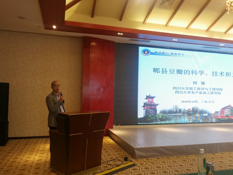 来自国内的70余家大专院校和酿造企业专家学者、企业科研人员出席年会,18位领域专家分享精彩的学术报告,分别介绍领域的研究进展,交流新理论、新技术、新方法,探讨酿造产业科技进步,共话酿造产业未来发展。副院长何强教授、食品工程系主任吕远平教授及副系主任迟原龙副教授参加本次会议,与参会专家学者们就上述问题进行深入的沟通与交流。其中,何强副院长在会上做了题为“郫县豆瓣的科学、技术和方向”的学术演讲,从郫县豆瓣产业现状、关键科学问题与技术创新、郫县豆瓣传统产业发展方向三方面展开介绍,如何突破郫县豆瓣原有产品单一的困局,助推郫县豆瓣真正成为川菜川味的中国味道载体,实现传承与创新的结合。与会学者产生浓厚兴趣,通过交流极大的提升了我校食品专业在全国高校和企业当中的知名度和影响力。
