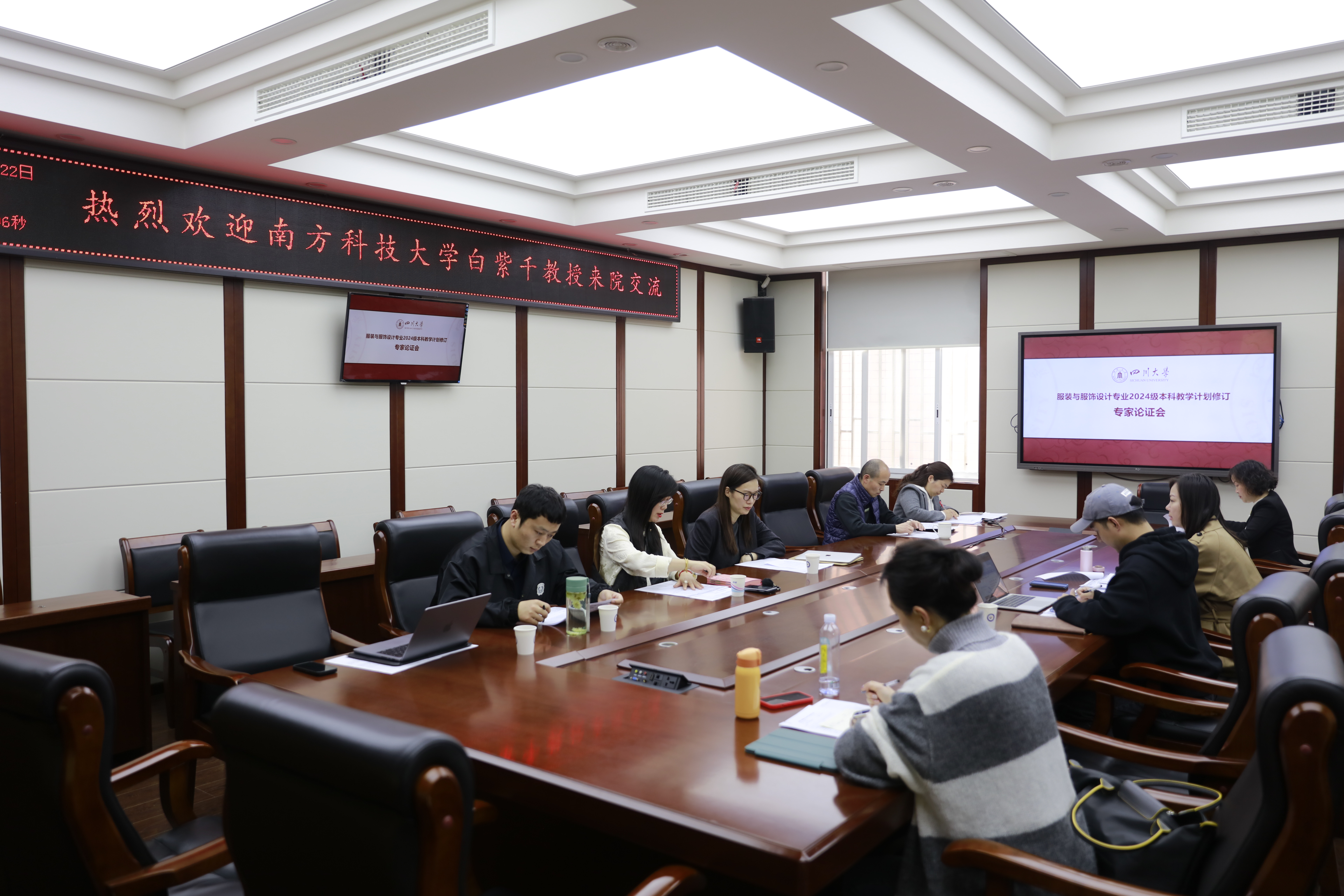 2024年3月22日下午,我院服装与服饰设计专业在四川大学望江校区纺工副楼205会议室举行了2024级本科教学计划修订专家论证会。服装与服饰设计专业教师代表参加了会议,南方科技大学助理教授白紫千老师受邀为论证专家,副系主任申鸿老师主持会议。