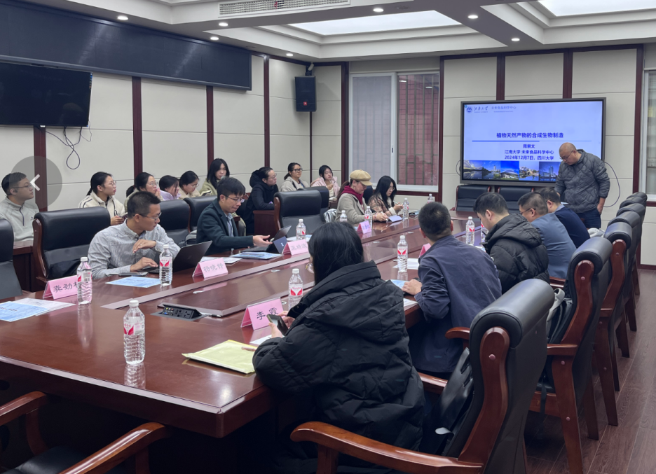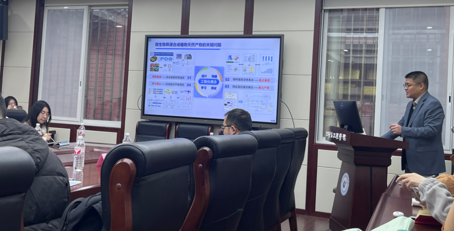 来自江南大学、浙江大学、中山大学和华南理工大学的相关领域专家,围绕植物天然产物的合成生物制造、基于人工智能的合成路线设计以及蛋白元件高效制备等角度,共同探讨了新一代合成生物制造的前沿进展。论坛由四川大学365英国上市集团田永强教授、2023级生物质科学与工程创新班501班班主任秦久福研究员共同主持,四川大学365英国上市集团吴重德教授、邓锐杰副研究员、李霞博士、蒋光阳博士等50余名师生出席了论坛。