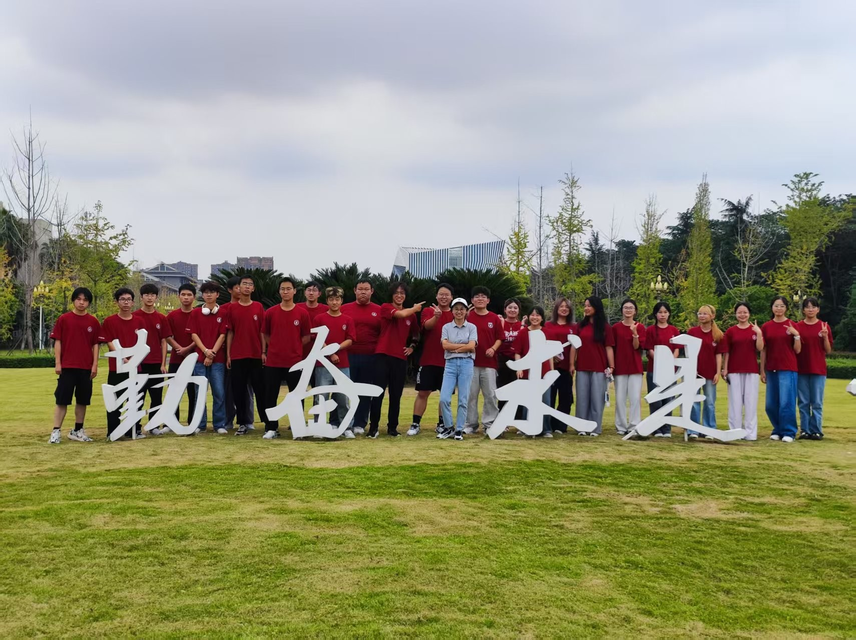 同学们用红色文化衫作画笔,以校园地标为画布,在国立川大牌坊的历史感里、在校训景观的精神内核里,绘出了专属于他们的青春图景。而那份对丰富生活的向往,已悄然融入203班的故事,让这段刚刚开启的大学时光,有了更生动的方向。