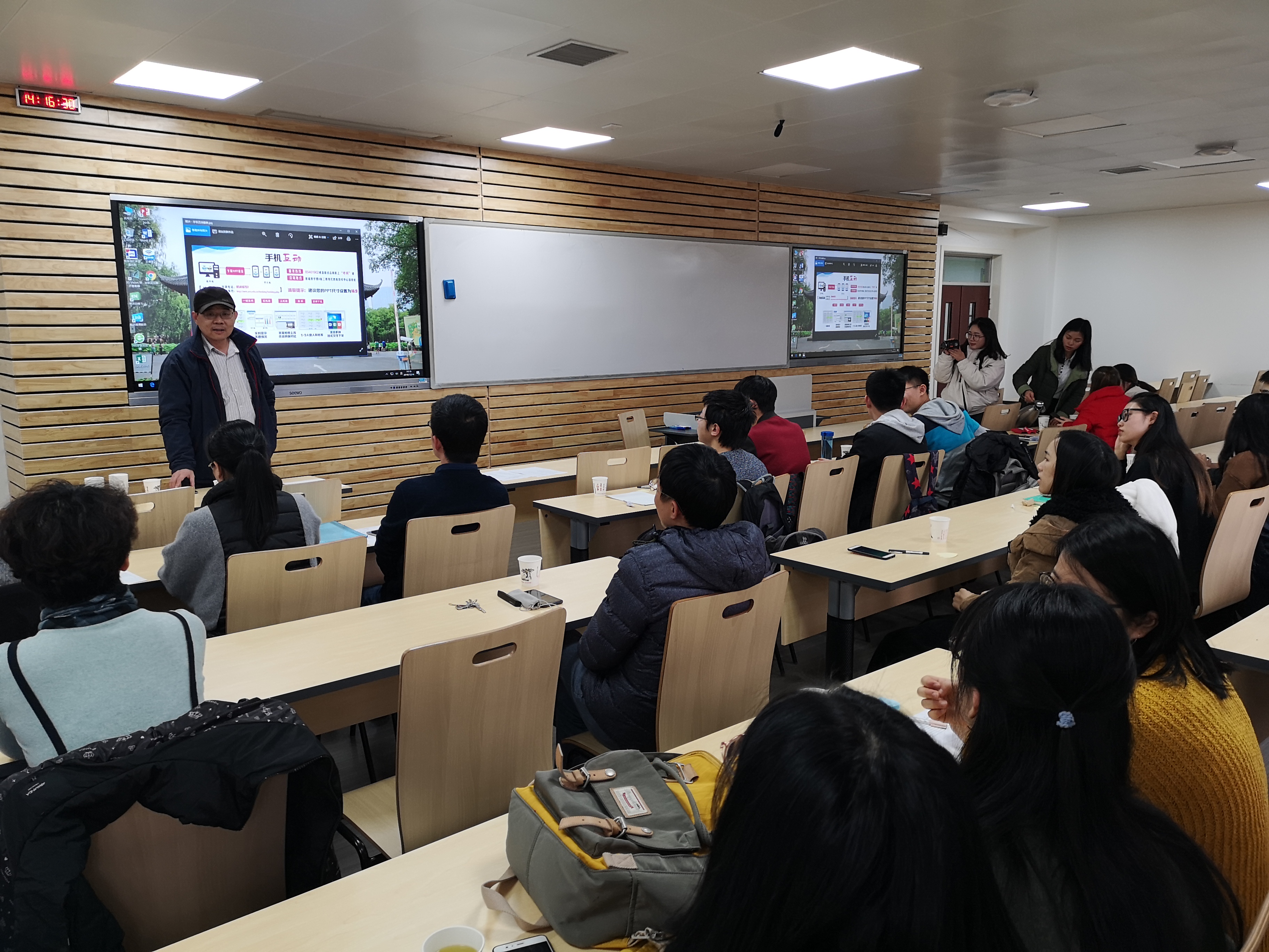 本次竞赛共有24位教师报名参加,根据智慧教室的类型分为网络互动教室、多视窗教室、手机互动教室、灵活多变教室等4个比赛小组