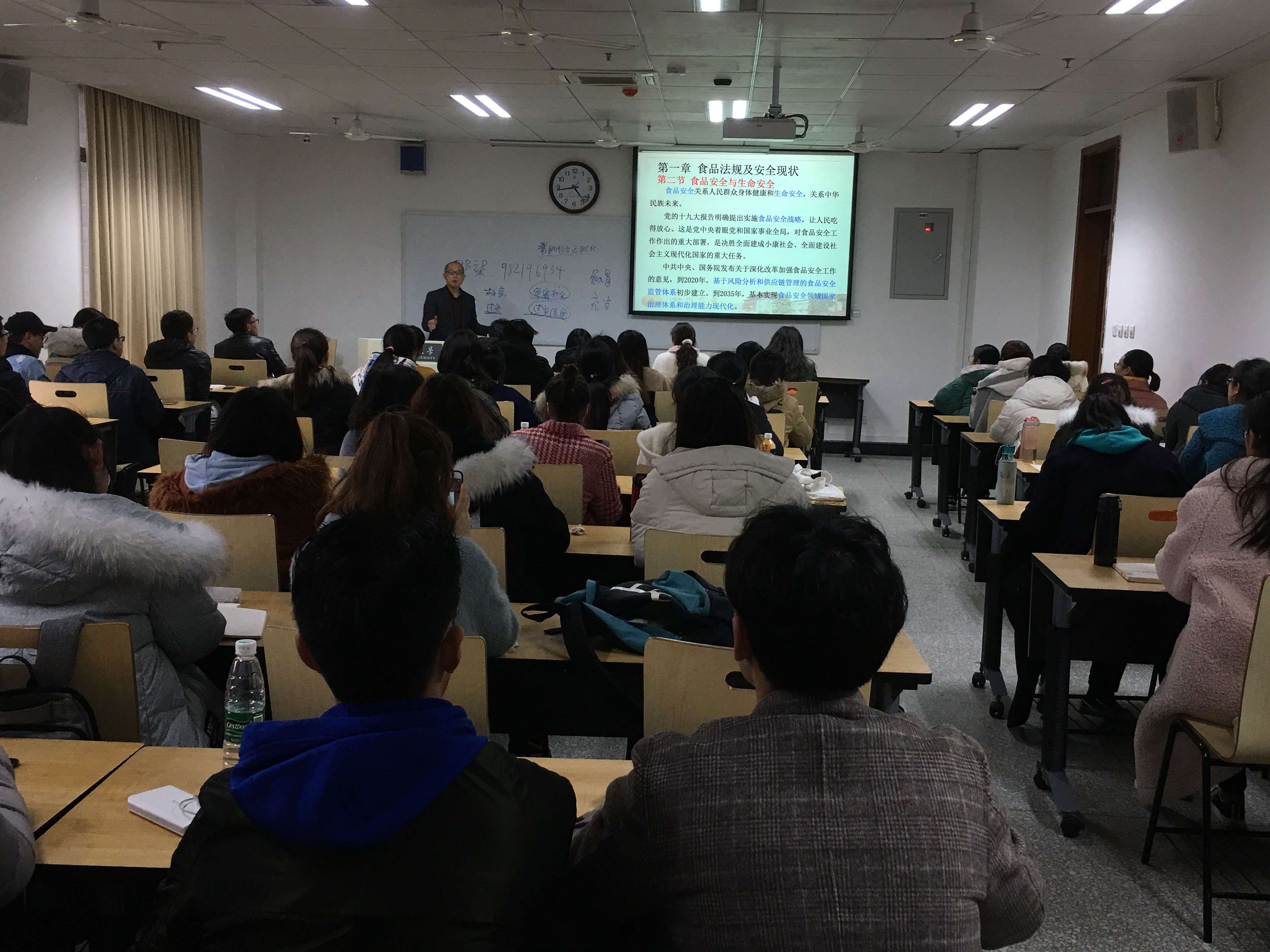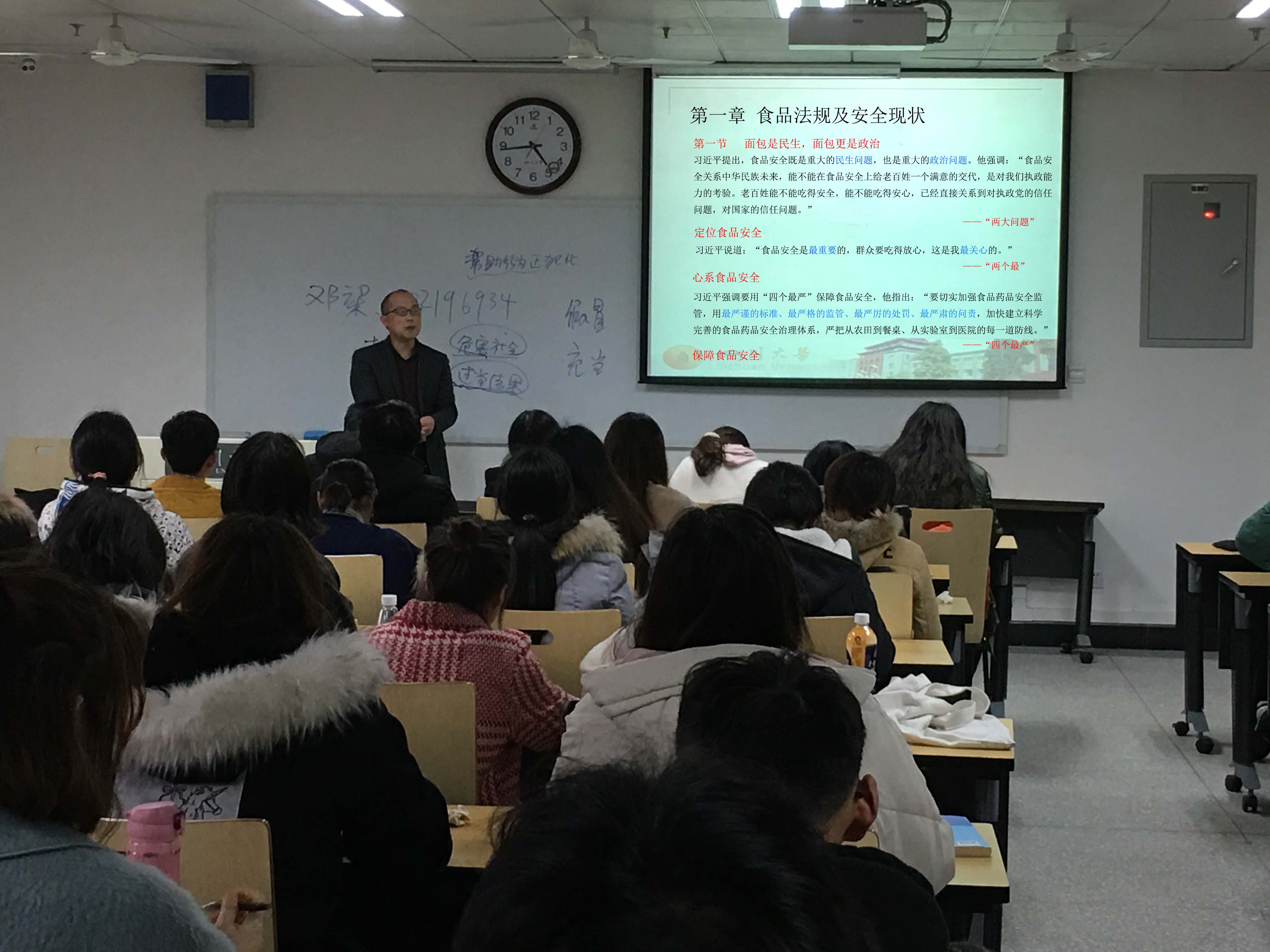 按照教育部、学校课程思政建设工作要求,学院积极探索在专业课程中深度融入课程思政内容,将专业课程教育与思想政治教育深入融合。为加强课程思政工作顺利开展,学院专门成立了课程思政课题组,从专业课程的教学大纲讨论、课程教学组织实施以及课程思政的推广宣传等方面进行了全面的部署与安排。本学期开学初,学院首先在《食品法规及生产管理》课程中融入课程思政相关内容,收到学生良好反响。