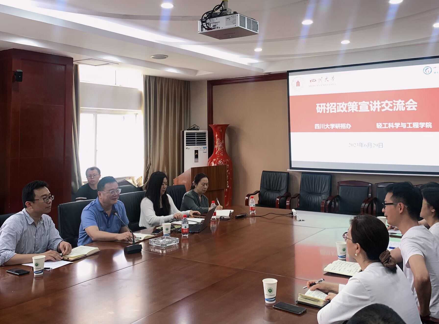 2023年6月29日下午,我院邀请研究生院招办刘猛主任在学院会议室举行了研究生招生政策宣讲交流会。轻工学院彭必雨院长、冯国涛副书记、迟原龙副院长、廖学品教授、研究生院招生办老师、学院硕博导和其他教学科研岗老师参加了会议。