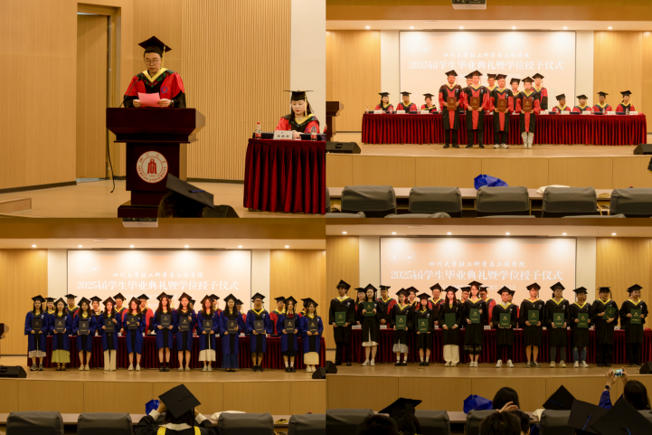 学院副院长迟原龙教授宣读了2025届毕业生学位授予决定。在庄重的乐曲声中,学位评定分委员会委员为毕业生们一一拨穗授位,并送上美好祝愿。