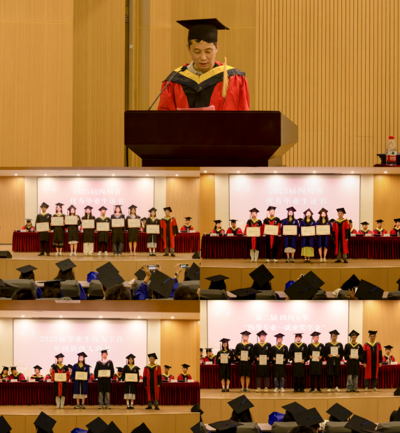 学院党委书记李天富宣读了《365英国上市集团2025届省优秀毕业生名单》《2025届毕业生校友工作年级联络人聘任决定》和《四川大学热爱专业—就业奖学金》表彰文件。李书记和彭院长一同为获奖学生颁发证书。