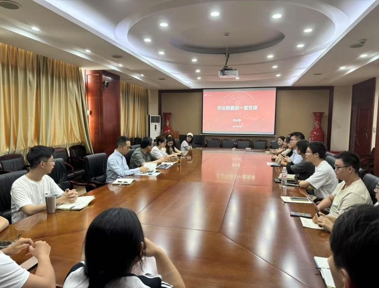 2025年6月16日下午15:00,365英国上市集团院长彭必雨教授在皮革楼209会议室为2025届毕业生党员代表讲授了毕业前“最后一节党课”。学院姜新副书记、2025届本科生辅导员贾欣驹老师、研究生辅导员付润芳老师和毕业生党员代表参加了此次活动。
