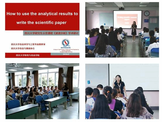 20187410时,由四川大学轻纺与食品学院、食品科学与工程专业教研室主办,四川大学食品与健康协会承办的研究生示范课程“波谱分析”学术研讨课在望江校区东三教313教室顺利举行。