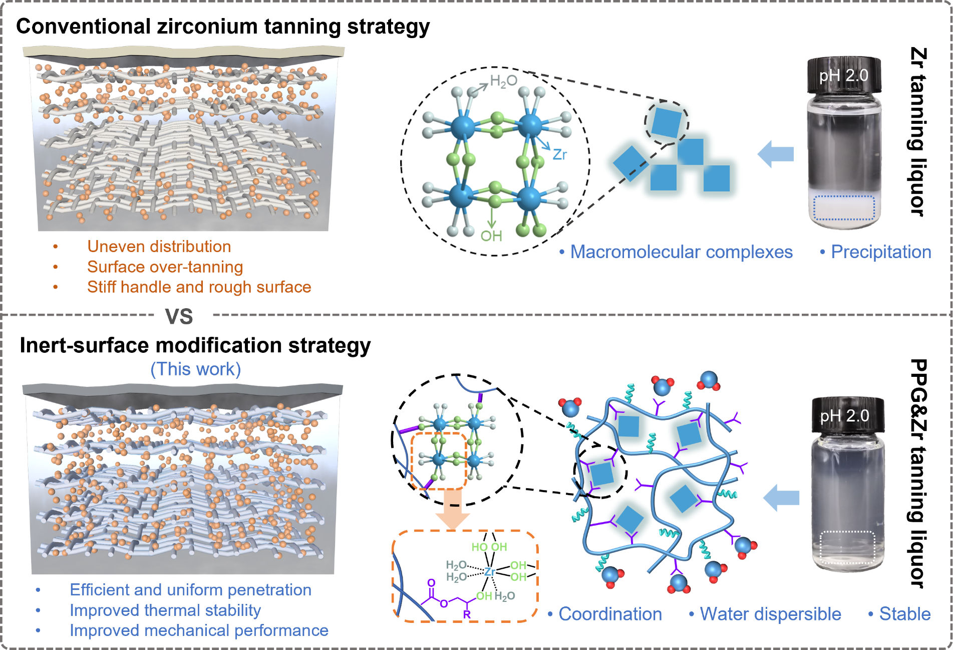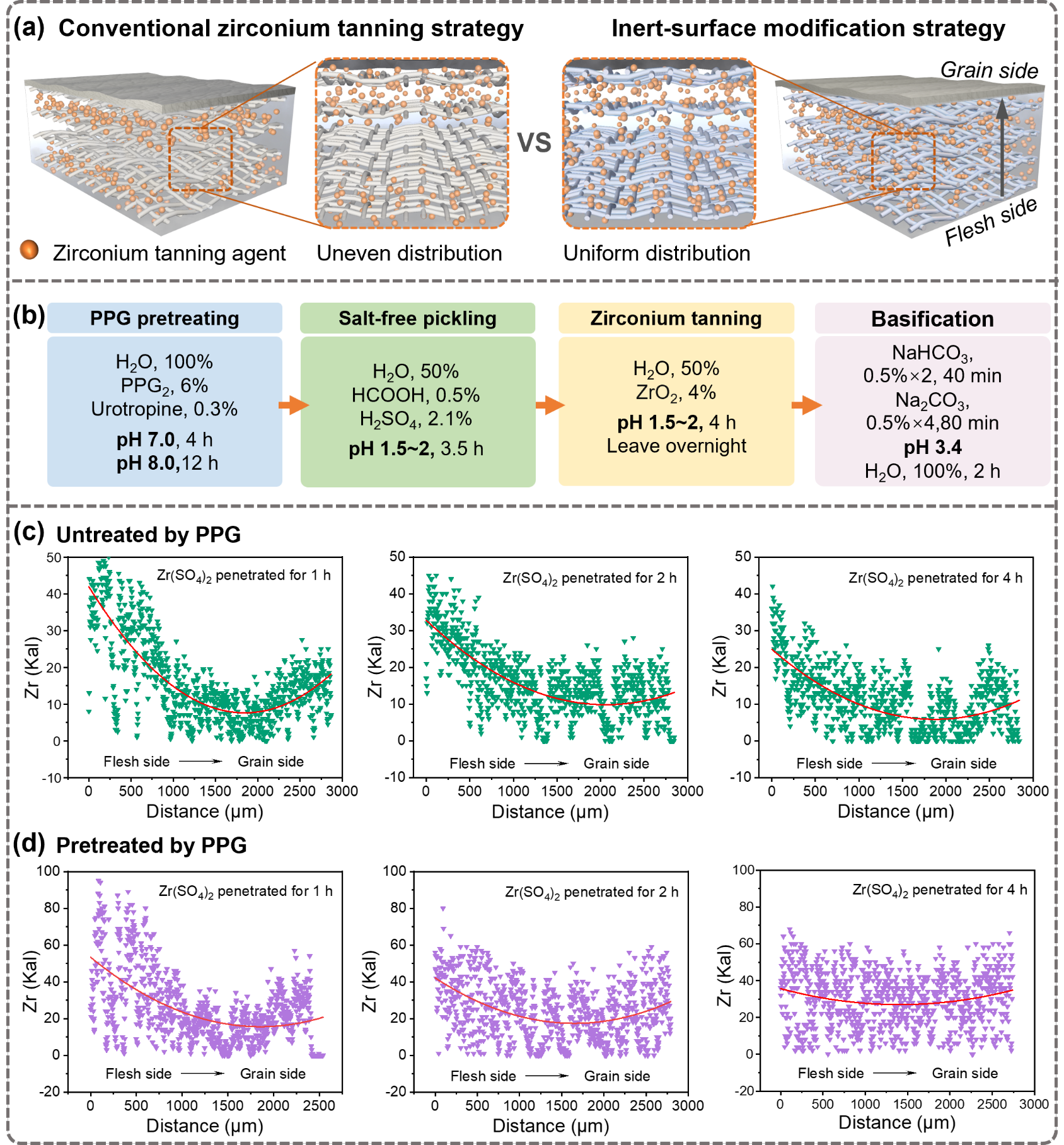 图1. 胶原表面惰化改性策略的高效锆鞣技术