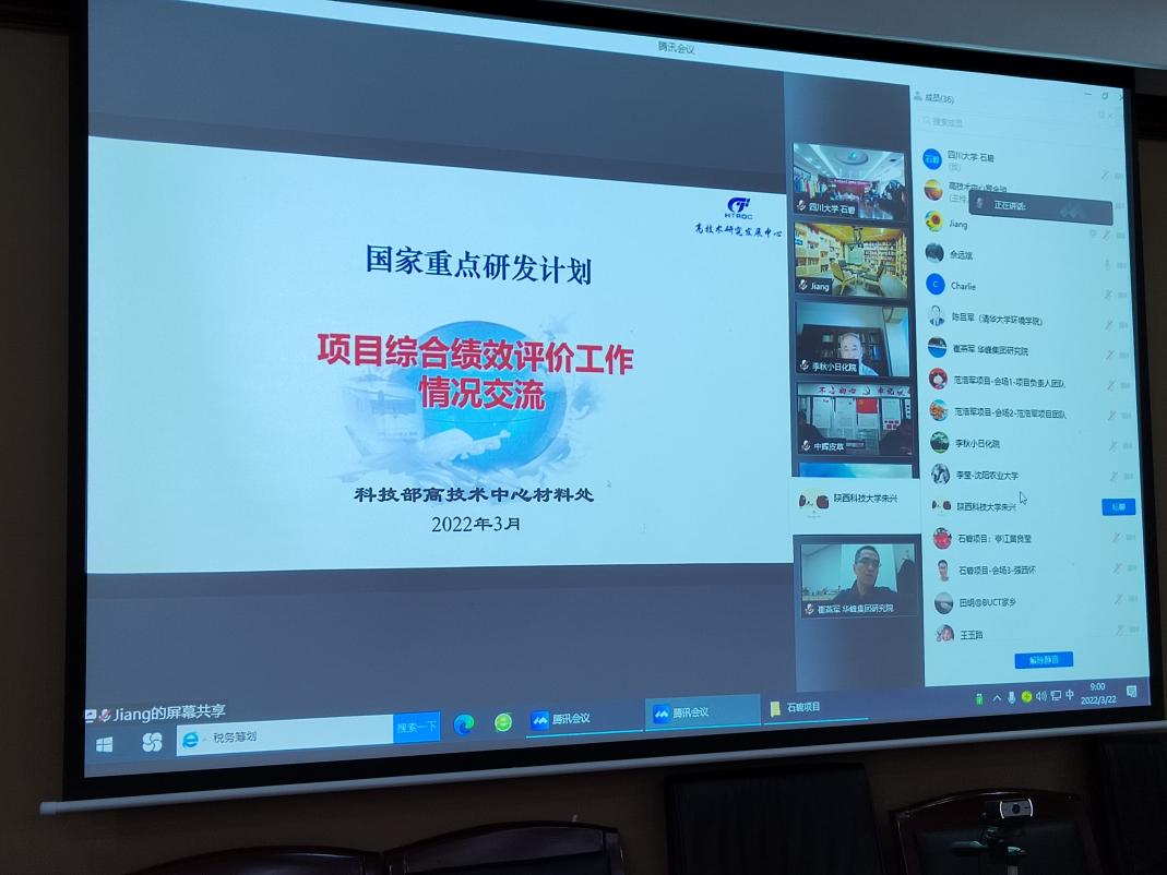 2022年3月22-23日,科技部高技术中心组织召开了由我院牵头承担的三项“十三五”国家重点研发计划项目“皮革关键酶制剂与生物技术及应用示范(2017YFB0308400)”、“生态皮革鞣制染整关键材料及技术(2017YFB0308500)” 和“生态皮革、合成革关键涂层材料及高值化涂饰技术(2017YFB0308600)”综合绩效评价会。因疫情原因,绩效评价会以线上方式进行。四川大学科学技术发展研究院邹勇副院长、陈鑫主任、张鸿科长、张滟副科长,三个项目的负责人石碧院士、彭必雨教授、范浩军教授和骨干成员周建飞教授、陈意教授、张春晓副教授等在四川大学皮革楼209会议室主会场参会,其它23个项目参与单位的技术和财务负责人等项目组成员出席了线上会议。