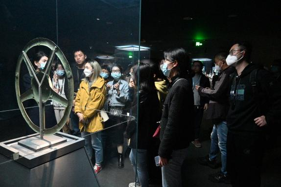 在讲解员的带领下,众人依次参观了综合馆及青铜馆。博物馆内展列的2.62米的青铜大立人、3.95米的青铜神树、宽1.38米的青铜面具,均堪称独一无二的旷世神品;而以金杖为代表的金器,以满饰图案的边璋为代表的玉石器,亦属前所未见的稀世之珍。一件件瑰宝从多方面不仅展示了一个瑰丽多彩的古蜀世界,更展现了中华文明起源、发展脉络和灿烂成就。支部成员认真聆听讲解员的讲解,仿佛穿梭时空,置身于距今4000多年的古蜀文明之中,深刻体会了古蜀文化中兼容并包,渴求开放的发展理念,领略了古蜀匠人巧夺天工的技艺和浪漫的艺术想象与创造力,感受到了三星堆文明的深邃厚重、灿烂辉煌。
