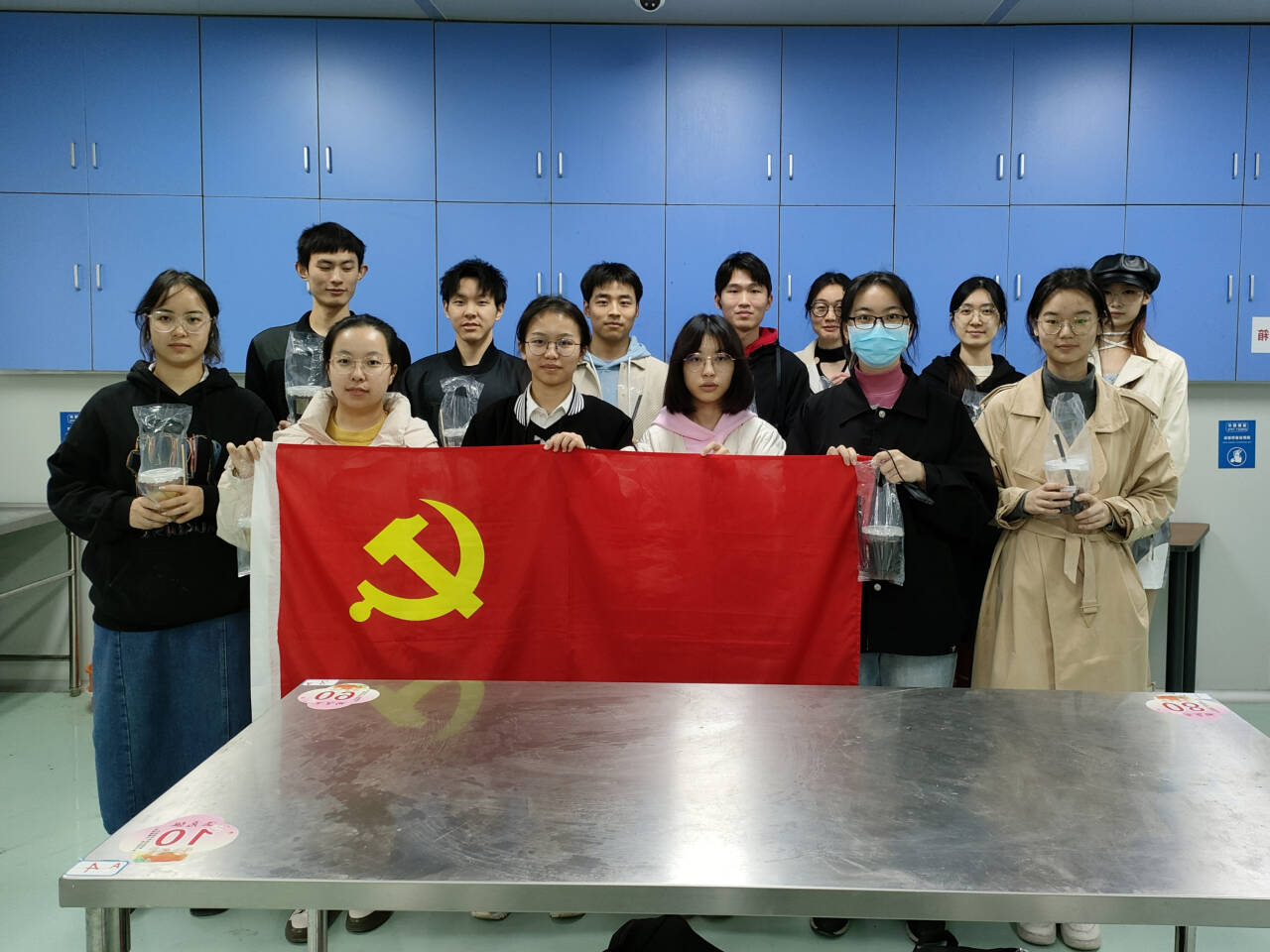 制作完成后,支部成员分为四组,携带制作好的暖饮前往考研自习室、教学楼、图书馆、寝室赠送饮品,并合影留念。