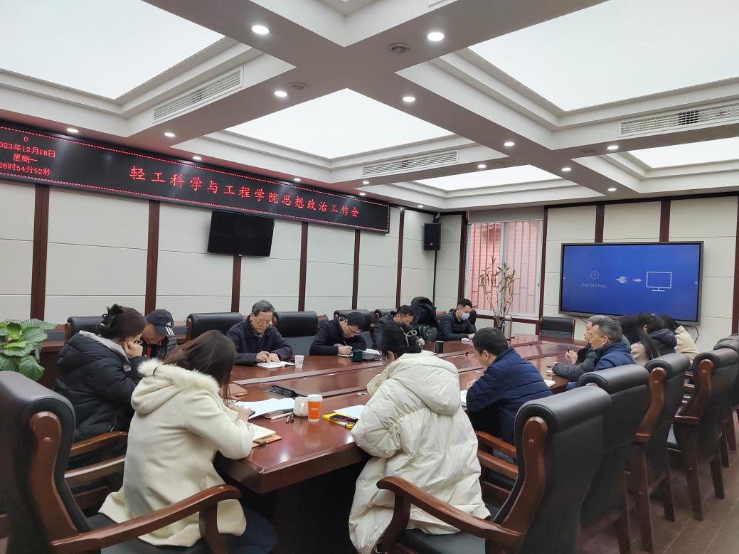 2023年12月18日上午,学院在纺工附楼205会议室召开了2023年秋季学期思想政治工作专题研讨会。学院领导班子、两委委员、专职组织员、科级干部、教工党支部书记、全体辅导员、教导员共同参会。会议由李天富书记主持。