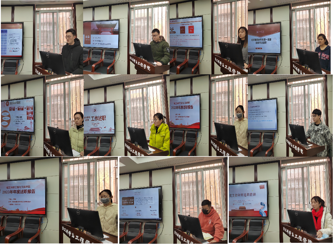 首先,学院12个学生党支部书记分别从支部基本情况、年度工作亮点、不足和改进措施三个方面汇报了2023年度党支部工作开展情况。