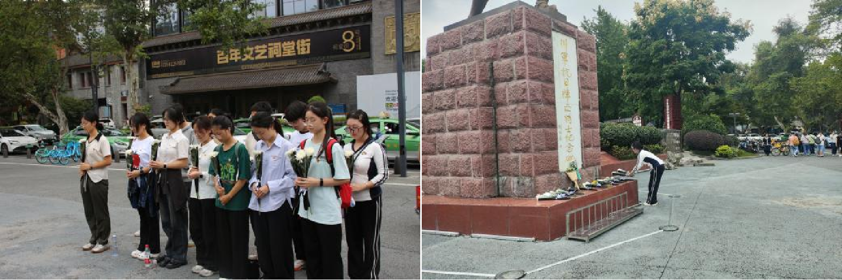 支部党员列队至川军抗日阵亡将士纪念碑前,共同回顾川渝儿女抗战英雄事迹。随后全体肃立默哀,向先烈表达缅怀与敬意,并依次敬献鲜花,仪式庄重肃穆。