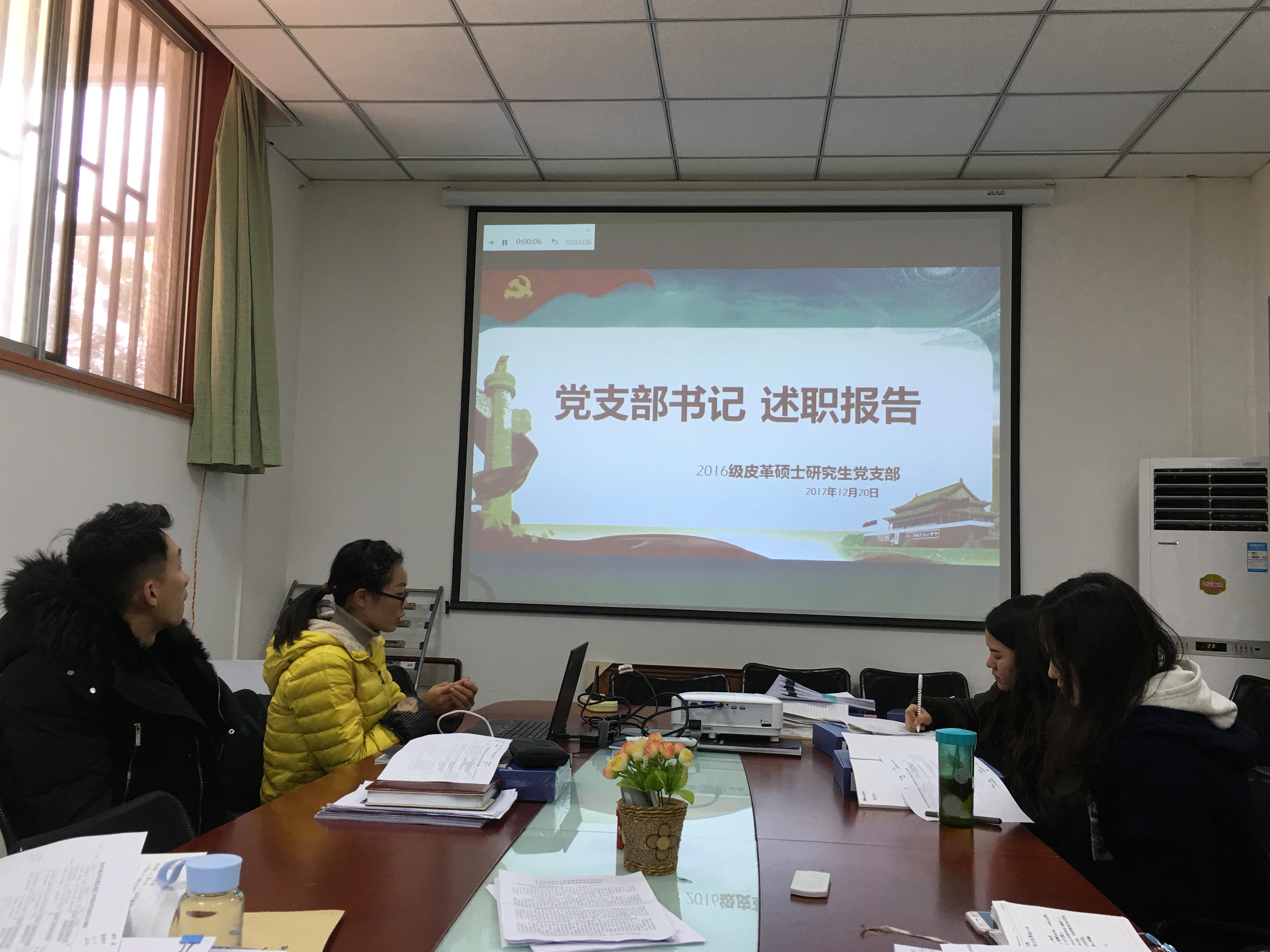 2017年12月20日中午12:30,轻纺与食品学院2017年学生党支部书记述职大会在纺工附楼201召开,党委书记刘晓虎副教授、党委副书记冯国涛老师以及12位学生党支部书记参加了此次会议,会议由党委副书记冯国涛老师主持。