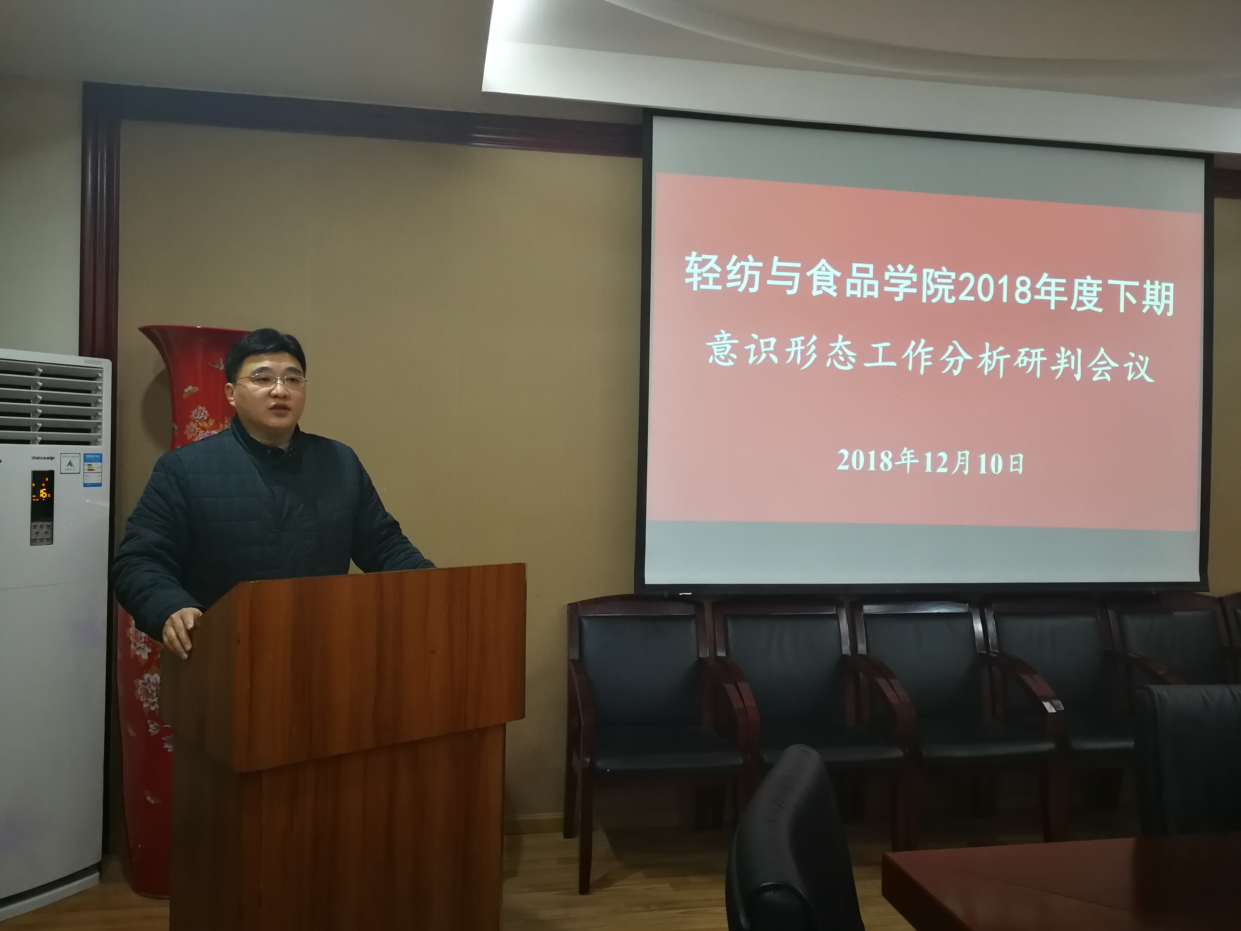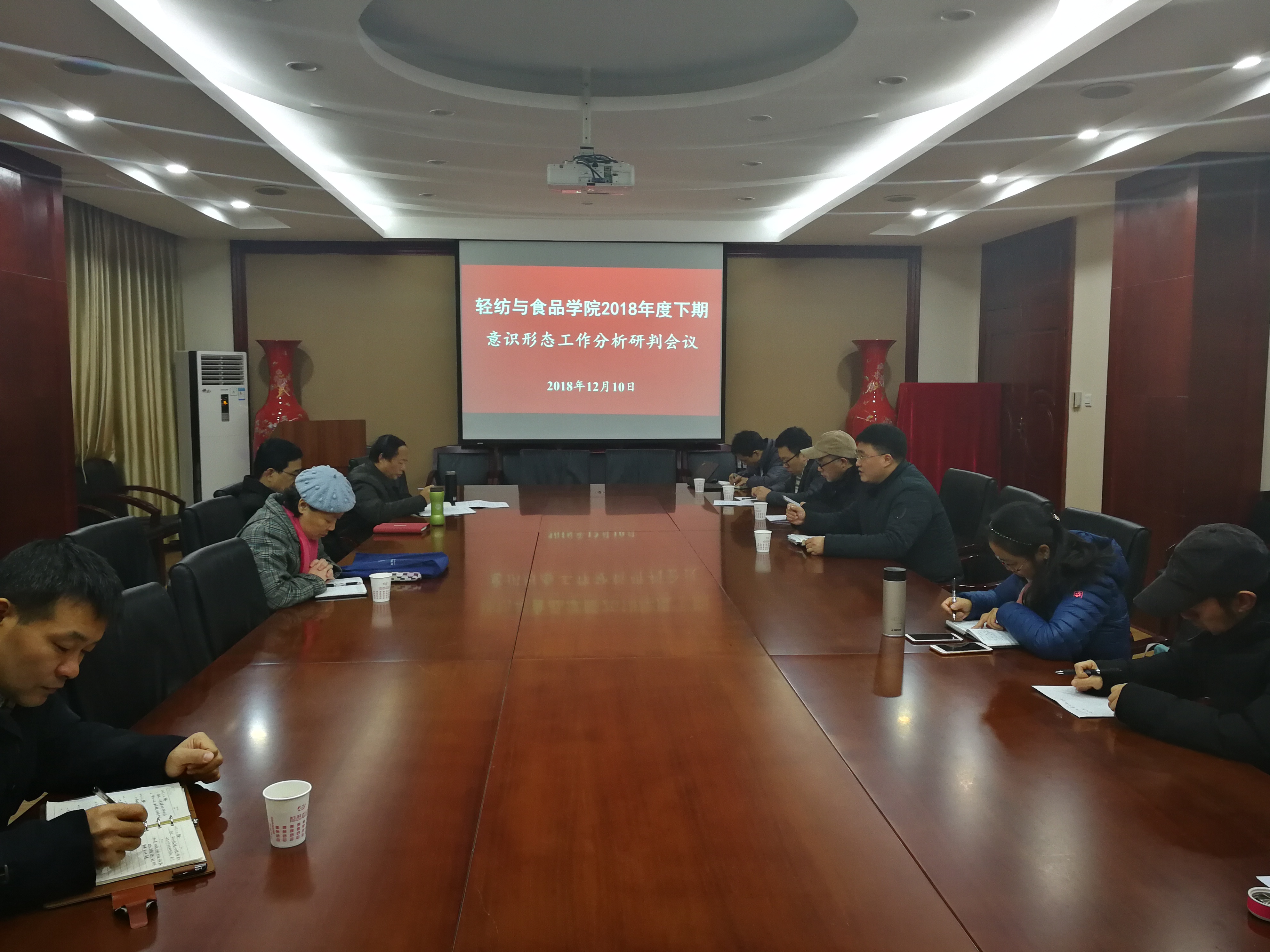 2018年12月10日上午,我院在皮革楼209会议室召开意识形态工作分析研判会议。参加本次会议的有学院全体中层领导班子成员、教职工党支部书记和副系主任以上干部。