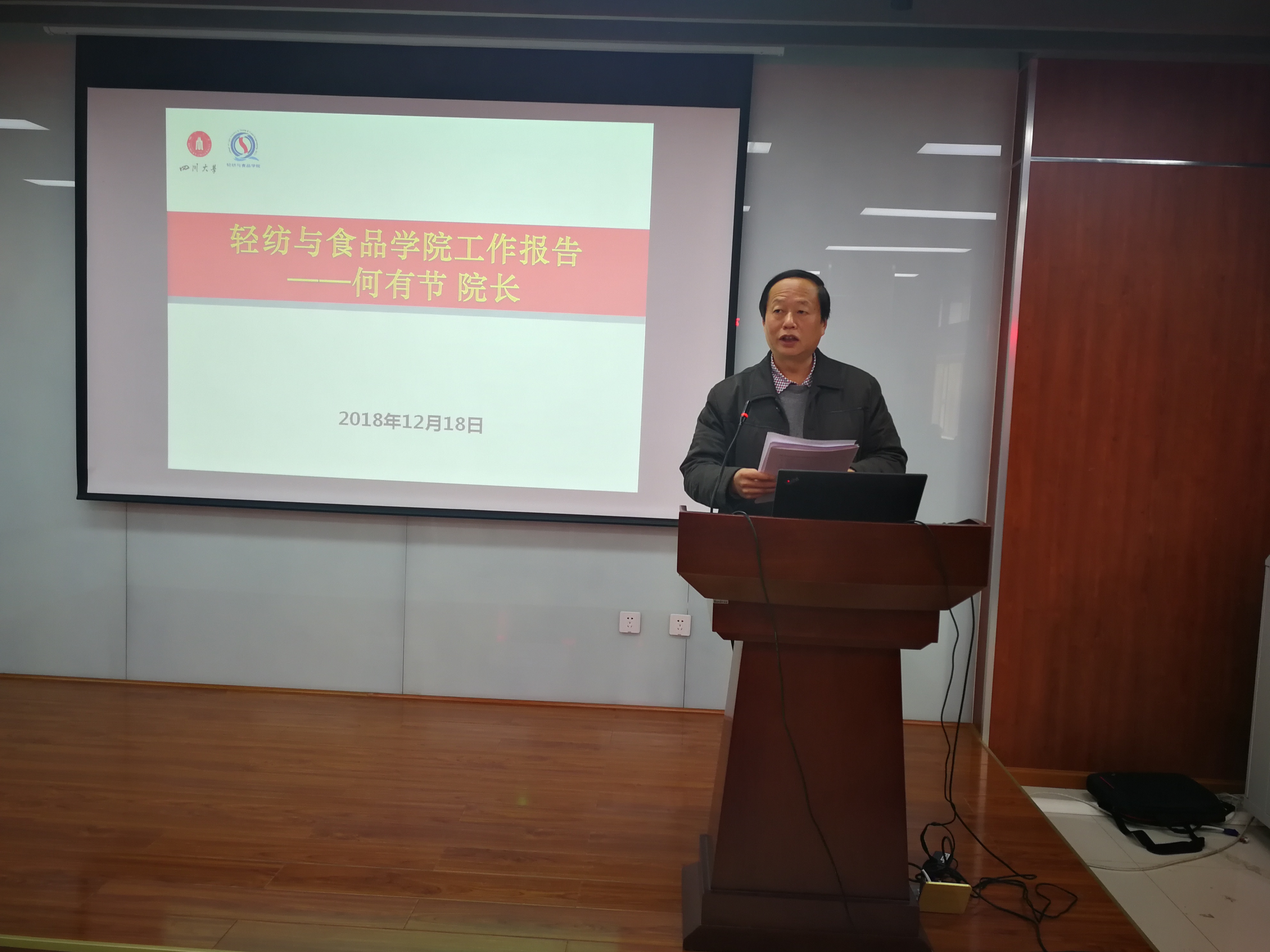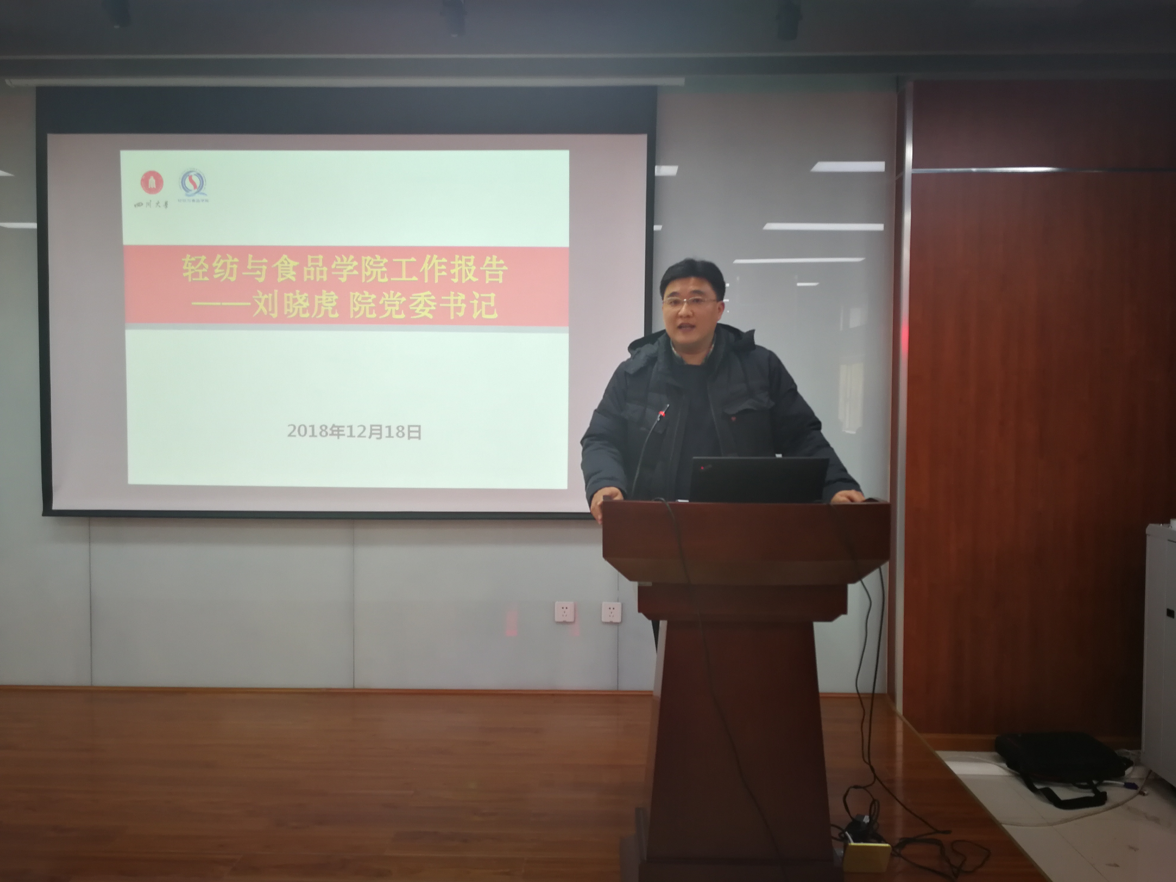 12月18日下午,学院在皮革楼报告厅召开本年度中层领导干部述职大会。刘晓虎书记、何有节院长分别就分管工作向全院教职员工做汇报,其余四位中层领导干部也分别就自己的分管工作向全院教职员工做年度述职。副处级专职组织员田彬就本年度工作做了汇报。随后,进行了中层领导班子、领导人员和专职组织员的民主测评,测评原始材料已在当天封装并上报学校党委组织部。
