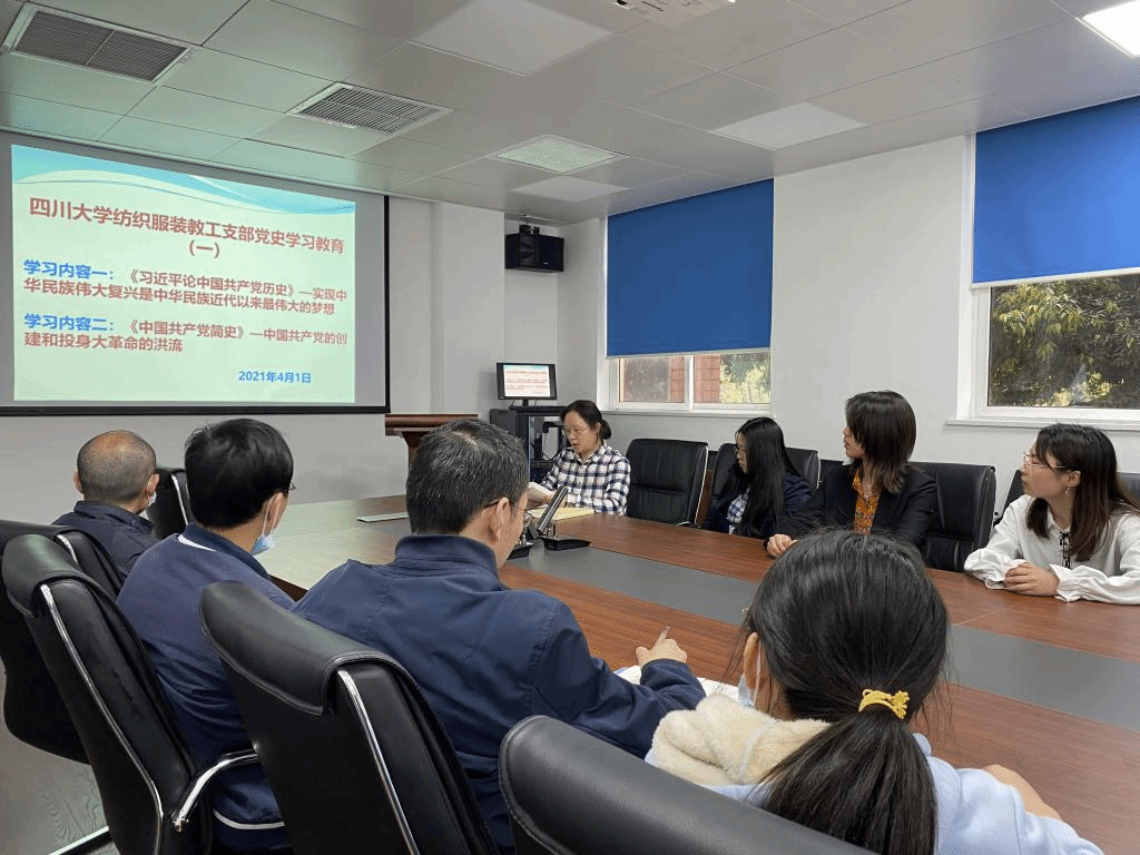 2021年4月1日,纺织服装教工支部党员和系所部分群众在支部书记顾迎春的带领下,通过导读和观看短片共同学习了《习近平论中国共产党历史》之“实现中华民族伟大复兴是中华民族近代以来最伟大的梦想”和《中国共产党简史》之“中国共产党的创建和投身大革命的洪流”等篇章。