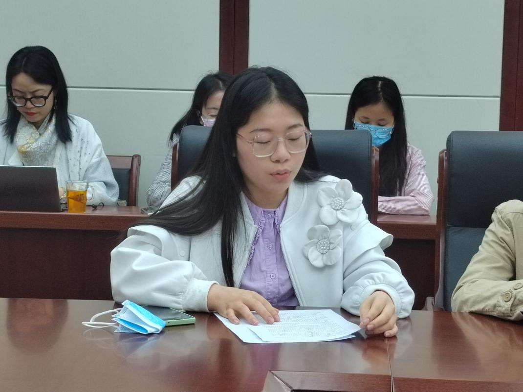随后,学院分团委书记李晓秀老师从学院共青团工作改革,努力提升共青团工作的吸引力、战斗力和凝聚力等方面向与会人员汇报了学院分团委工作开展情况。李晓秀老师谈到,作为一名基层团干部,深感责任重大、使命在肩,学院分团委将深入学习贯彻习近平总书记重要讲话精神,坚持为党育人、为国育才,引领青年早立志、立大志,铸牢对党忠诚的政治品格。同时,根据新时代青年大学生的新特点、新变化、新需求,不断探索青年工作的新思路、新模式、新举措,引领广大青年学生立志民族复兴,把青春奋斗融入党和人民的事业,不负时代,不负韶华,争做社会主义合格建设者和可靠接班人。