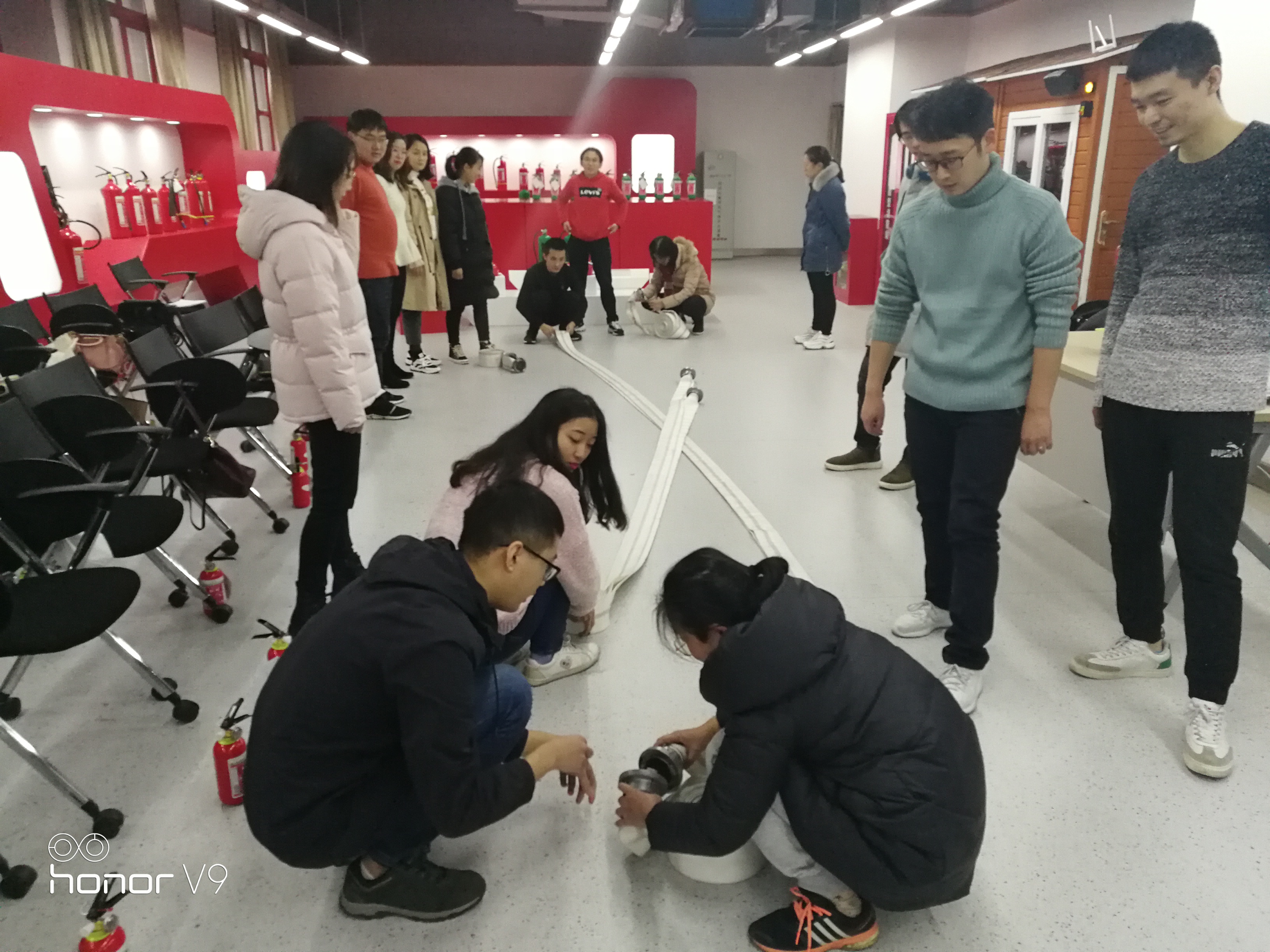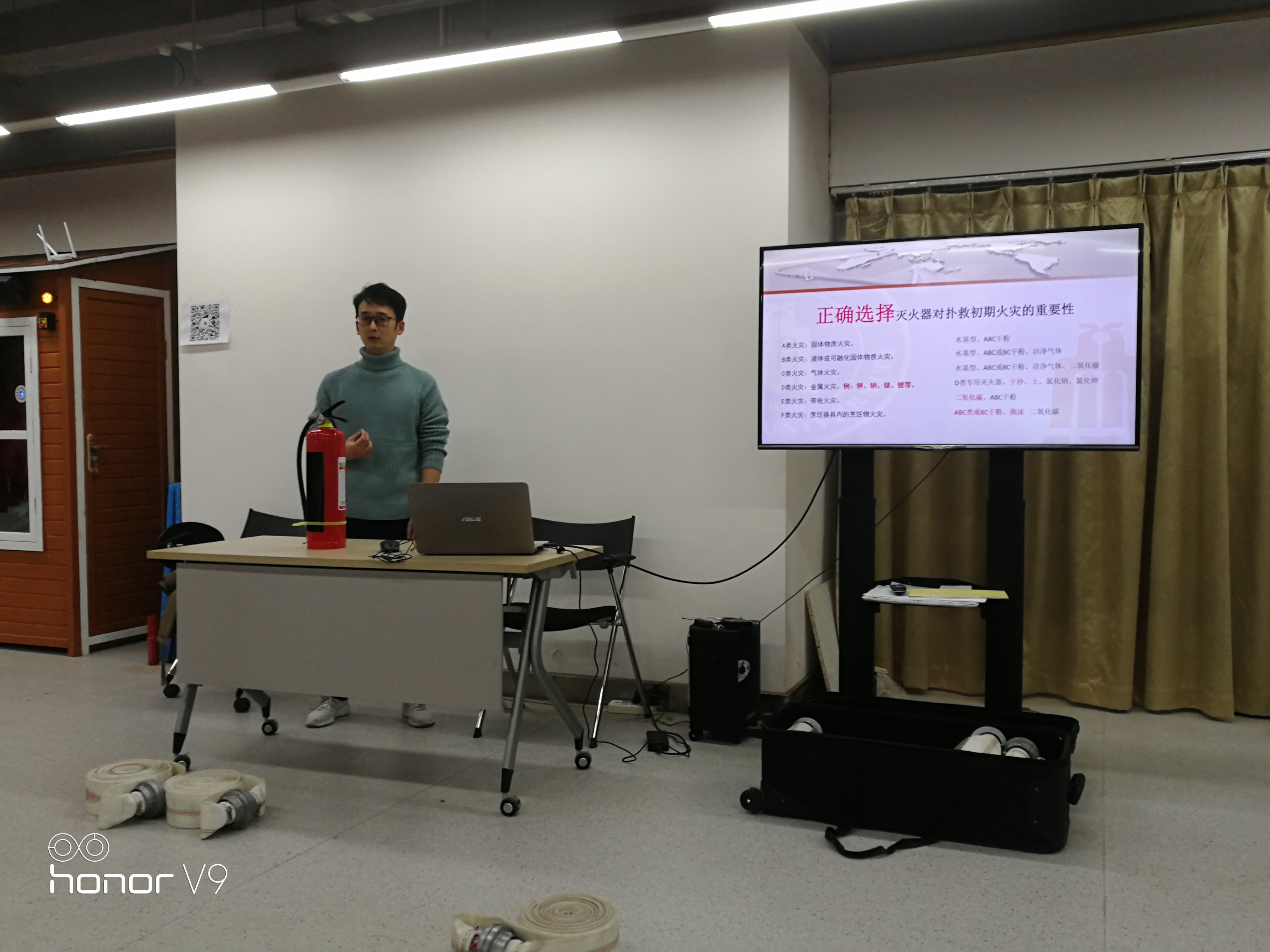 培训教师详细介绍了火灾的发生发展过程、灭火器的种类、灭火器是否有效的判断、正确使用灭火器扑救初期火灾的方法、消防栓的位置及使用、消防面具的使用、火灾报警、火场逃生等相关知识,全体参训人员进行了灭火和应急逃生实操演练。