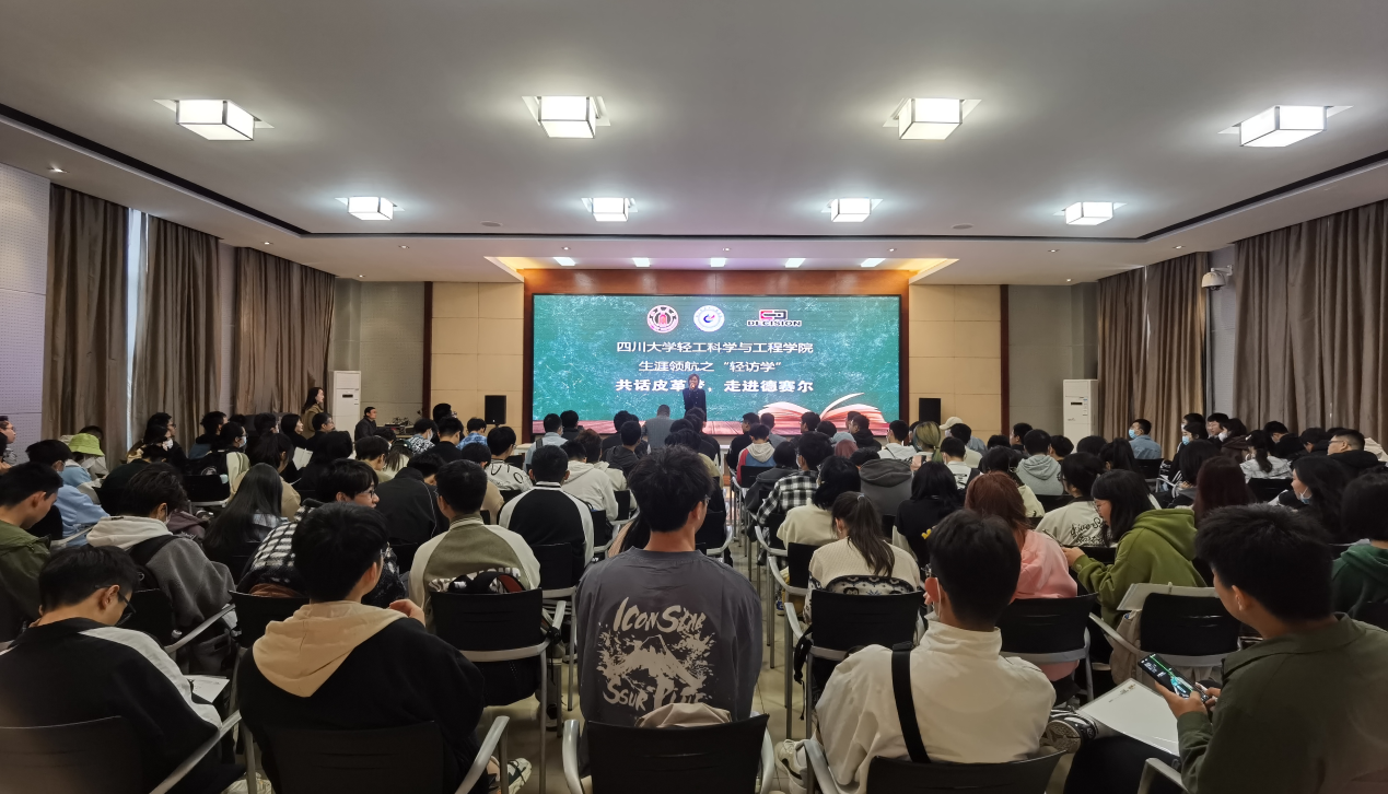 参观结束后公司特别安排了我院在公司工作多年的研发工程师、技术骨干等与同学们开展了“共话皮革梦,走进德赛尔主题交流分享会。首先公司总经理助理吴璐璐为同学们介绍了公司整体情况及德赛尔服务探索之路。接着,公司三位杰出校友——研发总工曾少余产品线经理龙进水厂研发经理孙青永博士分享了公司在皮革研发和皮革应用方面的思考以及自己对工作的思考也为同学们的生涯选择提出了建议。随后,学院党委冯国涛副书记进行了讲话冯书记首先对德赛尔公司此次访学活动提供的大力支持表示感谢,并谈到此次活动的开展加深了同学们对行业的认识,为大家做好未来职业发展规划提供了更清晰的认识新的思考。最后公司总经理丁学东进行了总结讲话。丁总勉励同学们,“大学是从考场到职场的转变,大学四年不仅应该深入扎实学好专业知识,更要为自己的未来职业规划做好充分思考和准备,同时职业规划很重要,既要仰望星空,也要扎根基层。