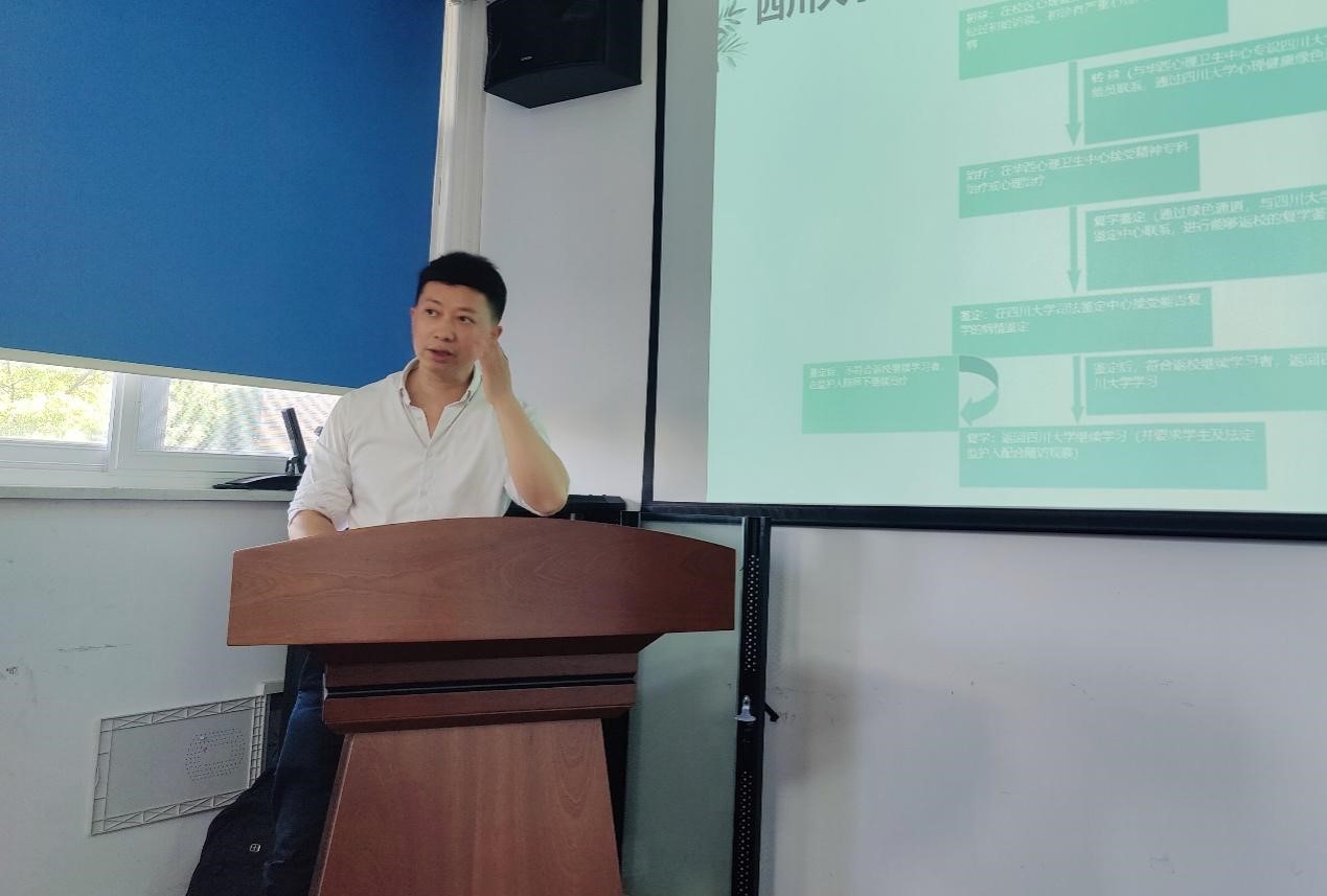 随后,刘昌波老师进行了心理专题培训,系统梳理了分级分类应对方案,明确了各环节工作重点与注意事项,分享了心理健康教育的干预方法与沟通技巧。