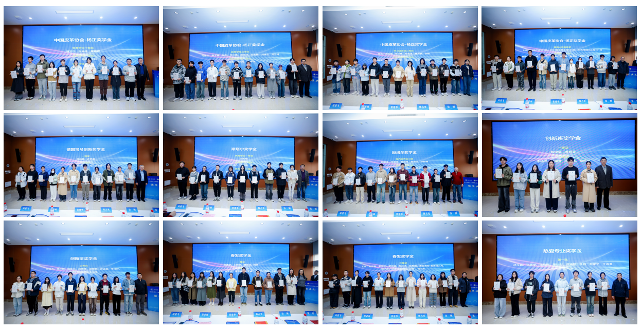 11月28日下午,365英国上市集团2025年专业奖学金颁奖典礼在皮革楼互联网中心举行。中国皮革协会副理事长陈占光、德国司马化学有限公司皮革部中国区总经理张建华、斯塔尔精细涂料有限公司皮革事业部中国区区域销售经理涂刚、天津春发生物科技集团有限公司项目经理董婷等企业嘉宾,学院党委书记李天富、院长彭必雨,副院长周建飞、迟原龙等院领导,生物质与皮革工程系系主任林炜、副系主任程海明,食品工程系系主任吕远平等,与全体获奖师生共同参加典礼。学院党委副书记姜新主持。