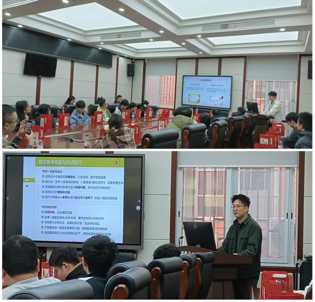 分享会上,王老师向考研学子致以祝福,肯定其拼搏精神,表示学院将营造良好备考环境、提供全方位保障,做学子坚实后盾,鼓励大家冲刺阶段稳住阵脚、以最佳状态应考。朱鸿杰、冯俊哲针对复习冲刺进行了分享。