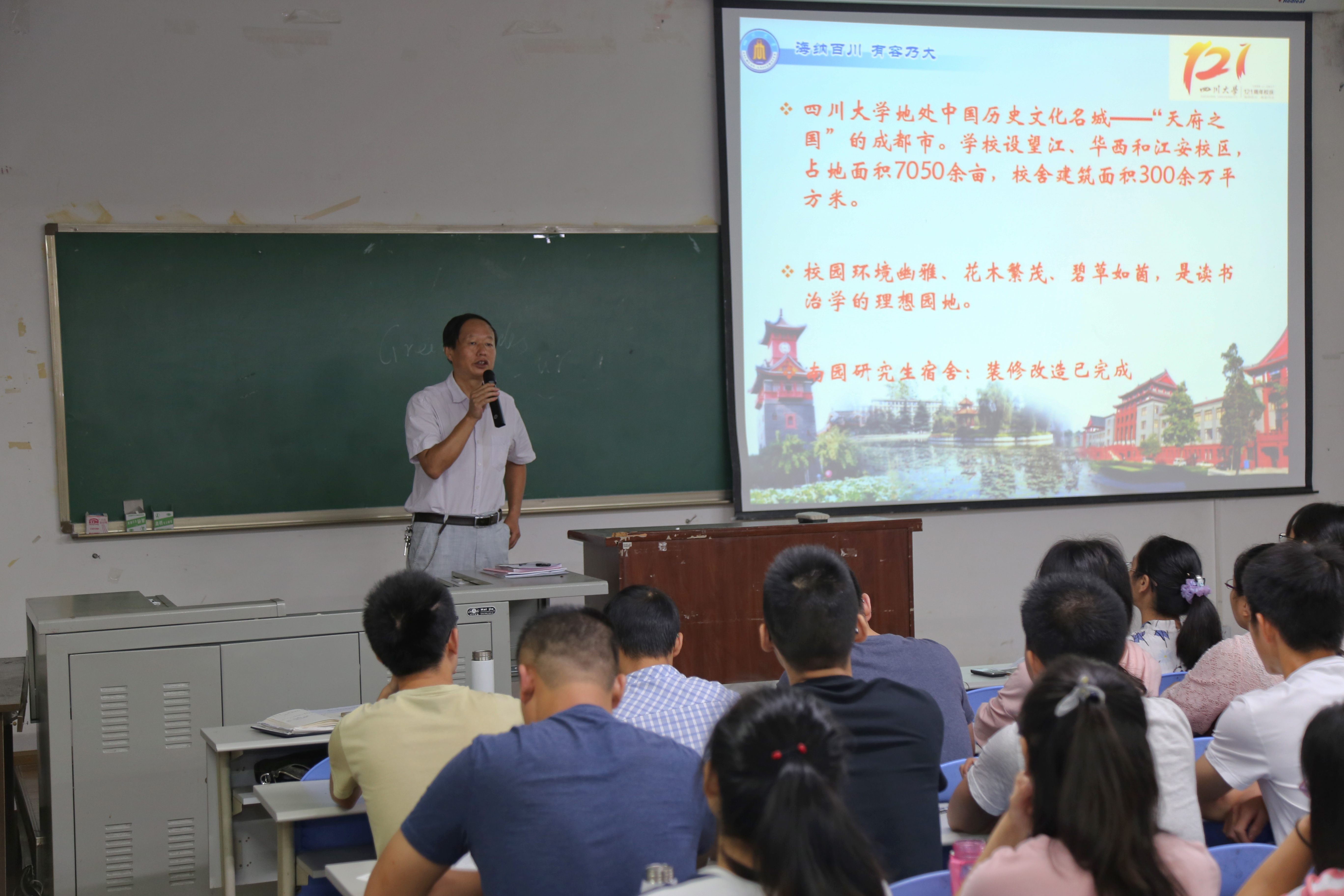 随后,何有节院长从四川大学的发展历史,轻纺与食品学院的学科设置、师资队伍、人才培养、科学研究、对外交流及学生活动等方面进行了全面的介绍,让2017级研究生新生对学院有了更全面、深刻的认识,并为在这样的团队中学习感到自豪与骄傲。