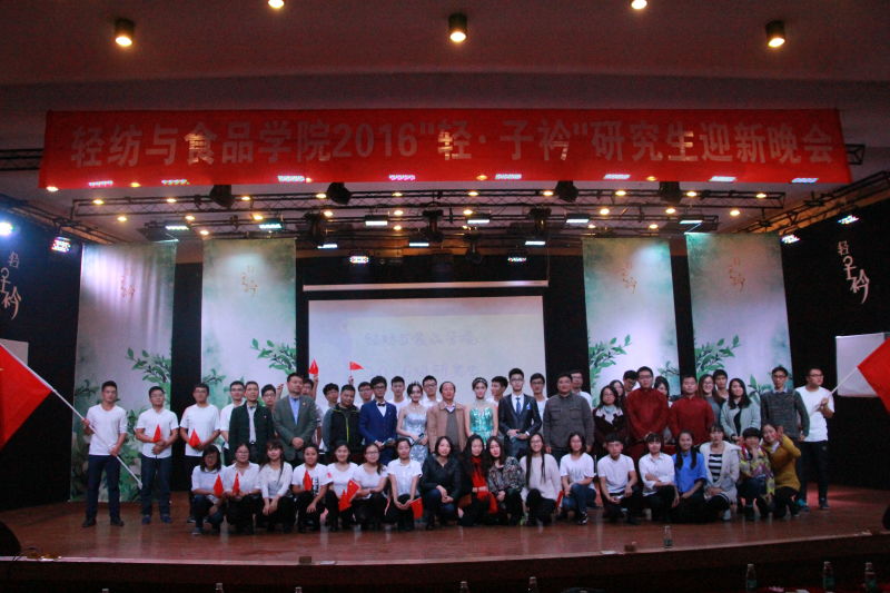 为了热烈欢迎四川大学轻纺与食品学院2016级研究生117名新生的到来,展现2016级研究生新生的风采,2016年11月13日晚,由四川大学轻纺与食品学院研究生分会主办的2016级研究生“轻·子衿”迎新晚会在文华活动中心成功举办。莅临本次晚会的领导嘉宾有:轻纺与食品学院院长何有节教授;院党委副书记刘晓虎副教授;学院肖凯副院长;院学生科科长、研究生辅导员冯国涛老师;院团委书记、2013级辅导员苏德强老师;院团委副书记14级辅导员李晓秀老师。