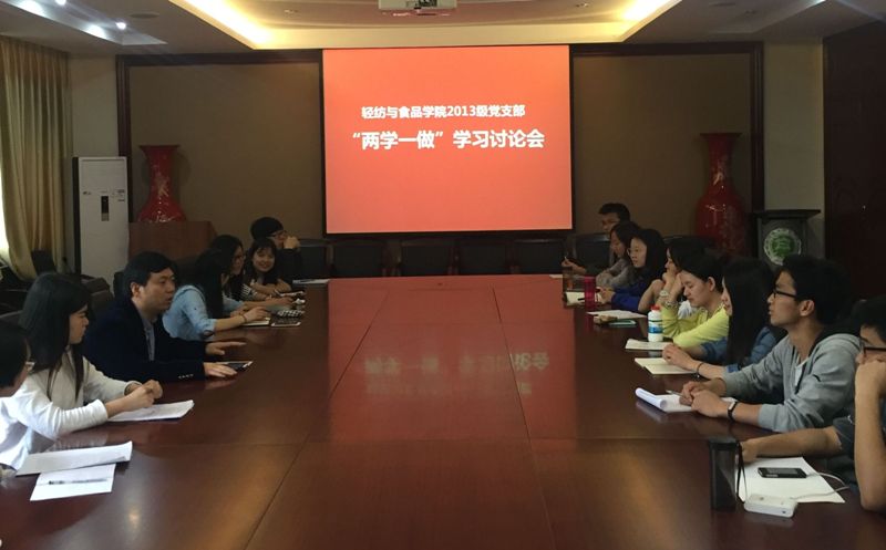 2016年4月15日下午14:00轻纺与食品学院2013级学生党支部“讲政治、有信念”两学一做学习讨论会在四川大学望江校区皮革楼会议室成功举办。本次讨论会由党支部书记苏德强老师主持,党支部全体成员参加了本次学习讨论会。