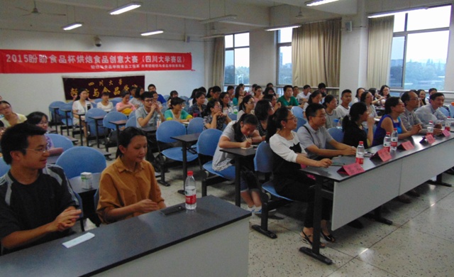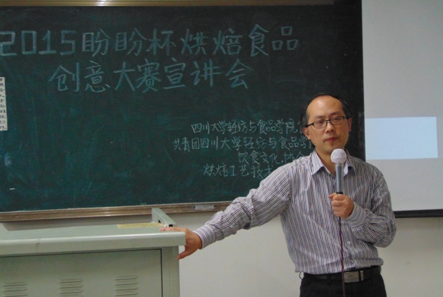 2015年4月28日19:20,2015年盼盼食品杯创意大赛宣讲会在四川大学江安校区第一教学楼A座218教室举办。本次比赛由中国食品科学技术学会和福建盼盼食品集团主办,四川大学轻纺与食品学院食品工程系、共青团四川大学轻纺与食品学院委员会、饮食文化协会和烘焙工艺技术协会共同承办。本次宣讲会的嘉宾有中国食品科学技术学会副秘书长郭勇先生,轻纺与食品学院副院长、食品工程系系主任何强教授、食品科学工程系副系主任贾利蓉副教授、食品工程系张佳琪、曾维才、李欣薇、何贵萍老师和2013级辅导员高江帆老师。