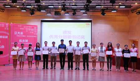 校党委副书记李向成教授宣读了《四川大学2014年度五四表彰决定》。在本次表彰大会上,我院继2011年度、2012年度、2013年度连续第四年荣获“五四红旗团委”称号,我院团委书记苏德强老师被授予“优秀分团委书记”称号。我院2013级轻化工程专业本科生许镇峰同学因综合表现突出被授予“砥砺自我以成事,古道热肠以待人”团员青年标兵称号,他是我院连续四年来第五位摘得此项荣誉称号的学生。此外,2014级轻化工程第五团支部荣膺“2014年度四川大学五四红旗团支部标兵创建单位”,2014级食品科学与工程第二团支部、2014级纺织工程第二团支部、2014级服装与服饰设计第三团支部获得“五四红旗团支部”称号,程天鹏等7名同学获得“2014年度四川大学优秀团员干部”称号,代明阳等14名同学获得“2014年度四川大学优秀团员”称号。我院2014年度团委工作在学院党委和学校各级行政的高度重视与大力支持下,通过弘扬共青团精神、推进基层团建以及组织各类活动丰富同学们的课余生活,有效地扩大了共青团的影响力,为我校共青团事业的发展贡献了自己的力量。