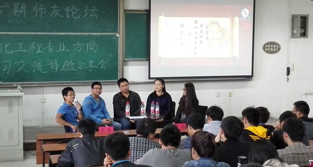 2015年4月10日,四川大学轻纺与食品学院师友论坛之轻化工程分专业方向分享交流会于四川大学江安校区第一教学楼B503教室圆满结束。本次交流会由2013级轻化工程第四团支部主办。本次活动的嘉宾有2012级皮革化学与工程专业硕士研究生张金伟学长,2013级革制品设计硕士研究生冉美玲学姐,2011级皮革工程方向本科生杨兴宇学长,2012级革制品方向本科生李若依学姐。学院团委书记苏德强老师以及全体2013级轻化工程本科生参加了本次交流会。