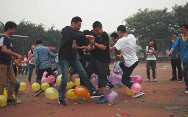 本次趣味运动会以“走出寝室,飞扬青春,趣味运动,你我同行”为主题,共设三个比赛项目,分别是地雷技术、爆破技术、搭桥技术,采用两两班级对抗的比赛形式。比赛还未开始,同学们就已经跃跃欲试,纷纷在一旁商量战术。比赛正式开始,同学们更是热情高涨,不仅参赛同学之间竞争激烈,场外的观众更是尖叫声连连,纷纷为参赛的同学加油鼓劲。在最激烈的爆破技术比赛环节中,来自不同班级的参赛选手使尽浑身解数踩爆对方的气球,引来了全场观众的声声尖叫,霎时间欢呼声淹没了气球爆炸的声音。最终,2014级纺织三班获得了本次比赛的胜利。比赛结束后,各个班级纷纷拍照留念,为自己的大学生涯留下珍贵的回忆。