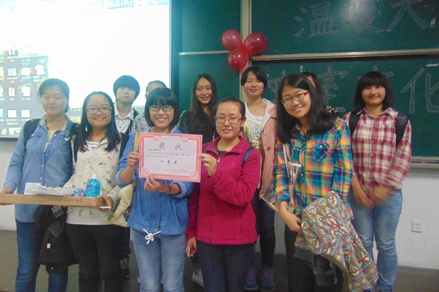 苏德强老师发表了热情的致辞。苏老师首先对入围决赛的八个寝室表达了祝贺和鼓励,介绍了学院寝室文化节对优秀寝室文化展示和促进全院寝室文化建设的重要意义,分析了寝室文化在物质层面和精神层面的主要内涵,并鼓励入围决赛的八个寝室进行轻松精彩的展示。接下来八个优秀寝室依次用PPT介绍了自己“小家”的特色以及住在里面的“家人们”,并为大家带来了精彩的才艺展示。在之后的答题环节中,参赛寝室各显神通,抢答题环节更是将全场气氛推向高潮。一阵欢声笑语之后,2014级辅导员李晓秀老师上台总结致辞,通过回忆大学期间与室友们结下的深厚友谊鼓励同学们重视寝室文化的建设。最后,苏德强老师和李晓秀老师为在比赛中获奖寝室颁发了奖状和奖品。本次比赛在同学们的欢呼声中圆满结束。