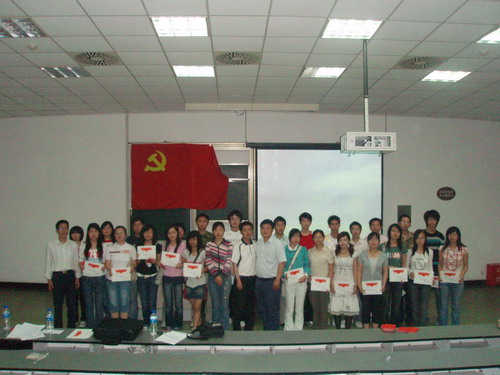 2008年5月16日晚上19:00,轻纺与食品学院、经济学院联合党校结业典礼在望江校区JC C201教室顺利举行。参加本次结业典礼的有轻纺与食品学院党委副书记刘晓虎副教授、经济学院学生科科长涂刚老师以及本届所有学员。结业典礼由冯国涛老师主持。
