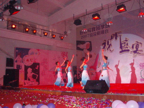 经过院团委学生会为期一个月的精心策划和组织,轻纺与食品学院2007级迎新晚会“视听盛宴”于2007年11月23日19:00在江安校区学生活动中心隆重举行。这场华丽的“视听盛宴”是我院团委学生会送给07级新同学最华美的礼物,同时本次晚会也得到了四川大学皮革系91级校友、广东惠昌皮革化工有限公司倪建荣先生的大力支持。