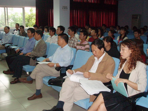 学院于2007年9月13日上午9点在皮革楼二楼报告厅举行了2007级研究生新生的开学典礼,学院党政和各专业负责人到会并对2007级研究生的到来表示欢迎。典礼由学院党委副书记刘晓虎主持;党委书记刘学文教授首先致辞并讲话,重点对学术道德进行了强调;院长陈武勇教授对院情进行了简要介绍并寄语全体同学学业有成。