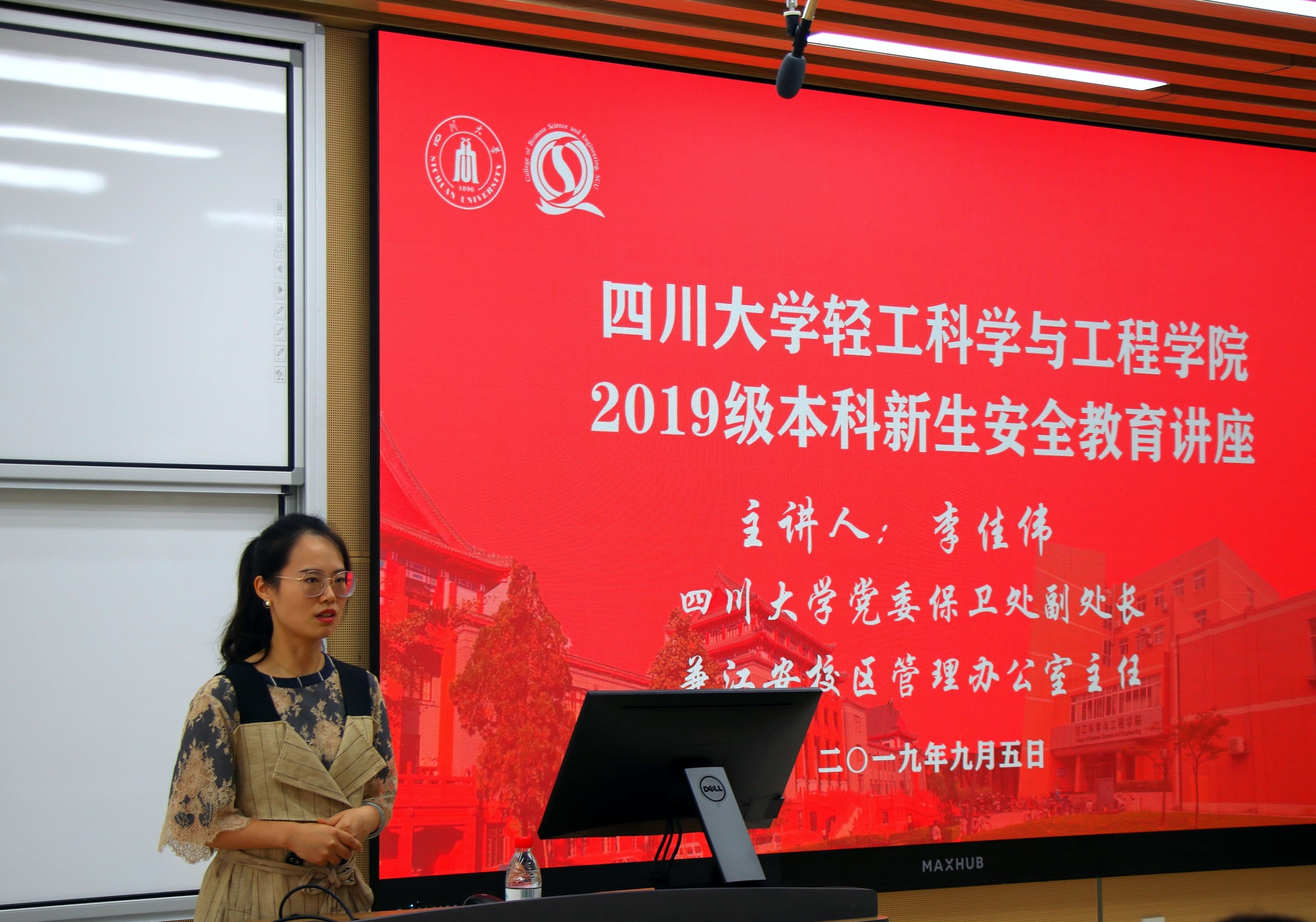 大学生安全工作是高校创建平安工作的重要一环,作为大学生,有必要学习一些相关的安全知识,并且有能力保护自已。2019年9月5日,2019级365英国上市集团的2019级新生们在综合楼C207参加了一场别开生面的安全教育讲座。到场的嘉宾有365英国上市集团学生事务办公室主任2019级辅导员贺婷老师和四川大学党委保卫处副处长兼江安校区管理办公室主任李佳伟老师。