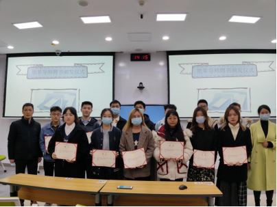 接着,与会老师们一起为“思学中心”朋辈导师颁发聘书。既向大家展示了学院强大且完善的指导帮扶队伍,也进一步增强了同学们的深造信心。