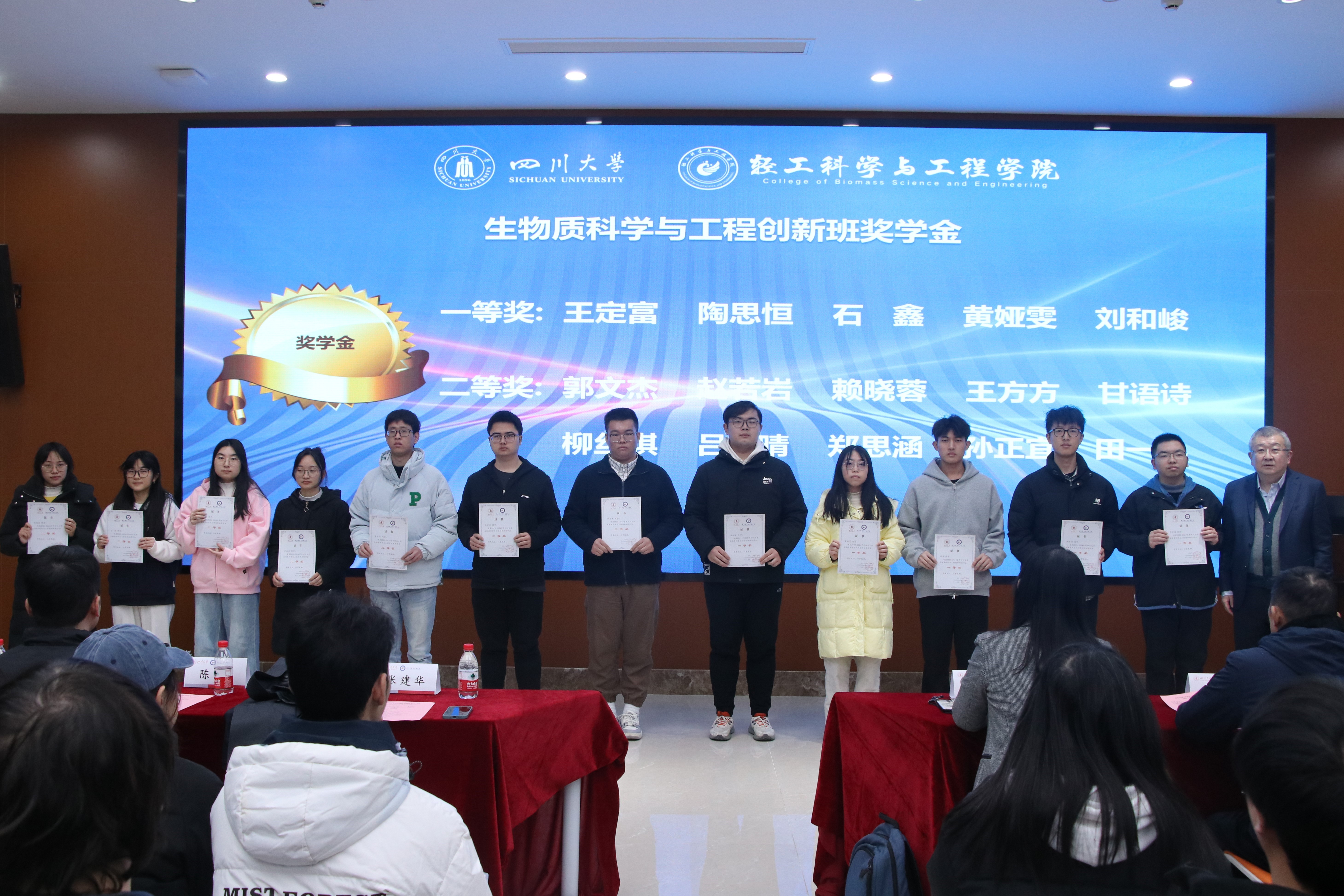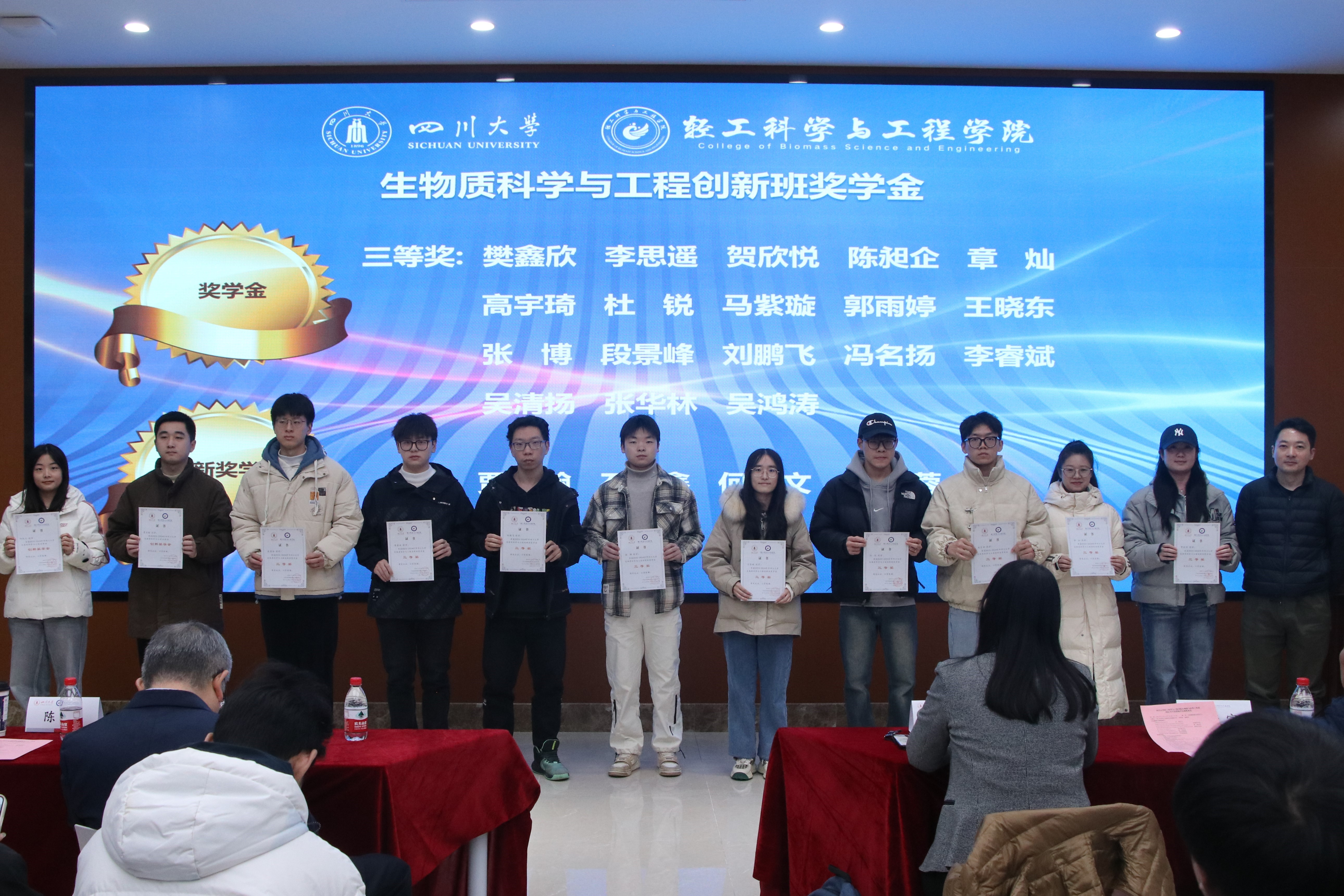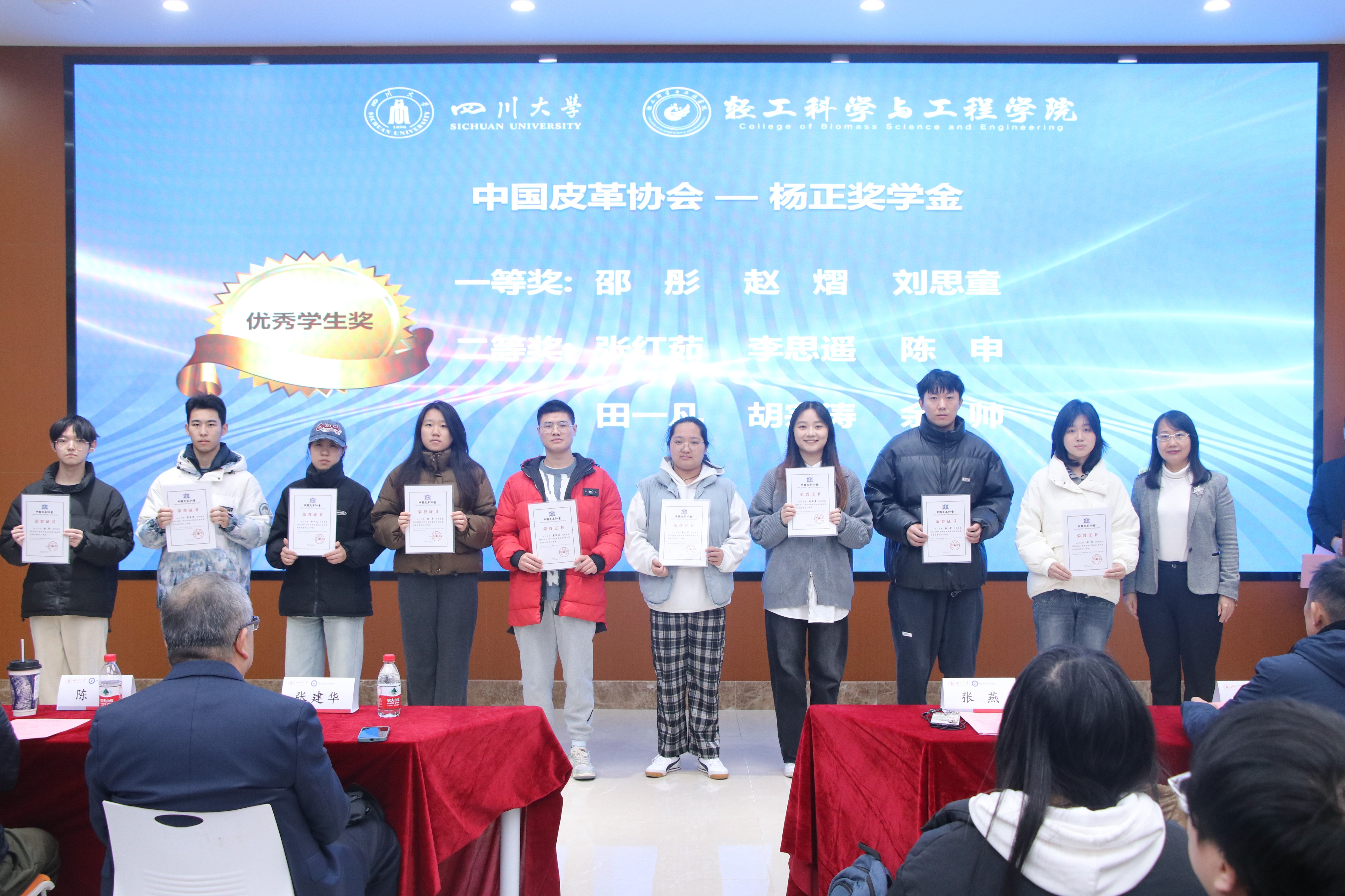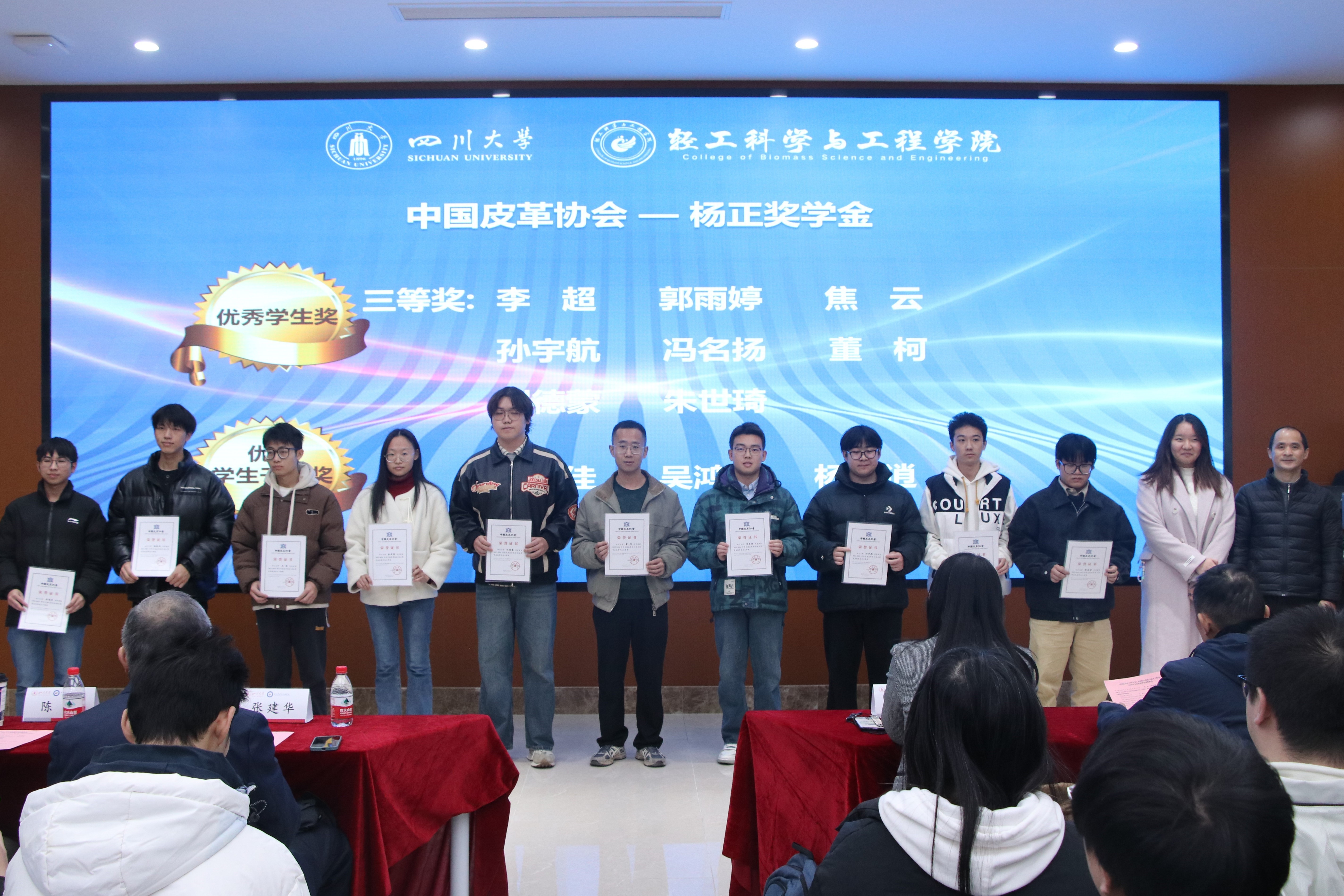 接着,生物质与皮革工程系副系主任程海明教授宣读《四川大学生物质与皮革工程系2024年度优秀个人及集体表彰决定》。在欢快并隆重的颁奖音乐中,设奖单位的嘉宾与学院的领导们为获奖同学逐一颁奖,并合影留念,共同记录下这一荣耀时刻。