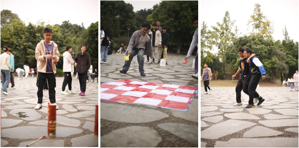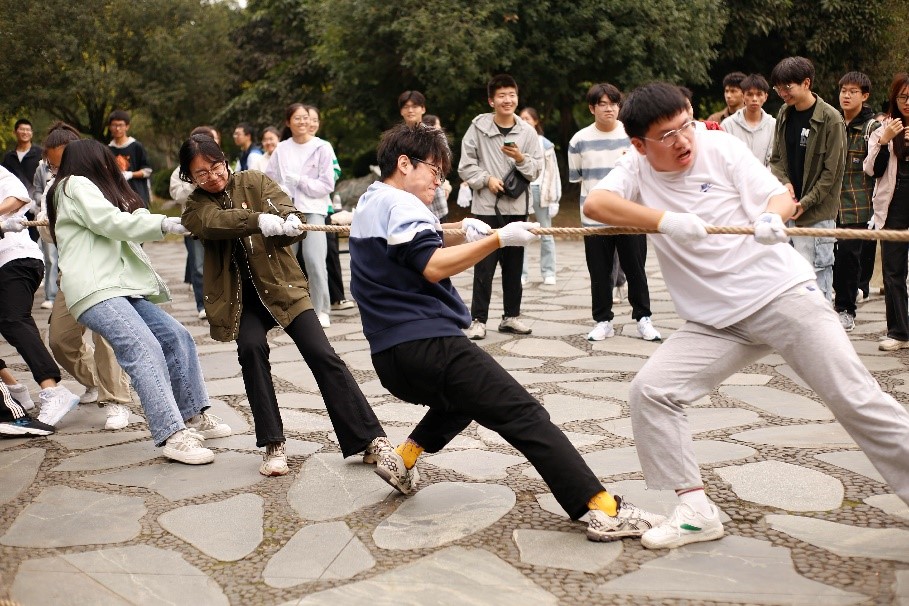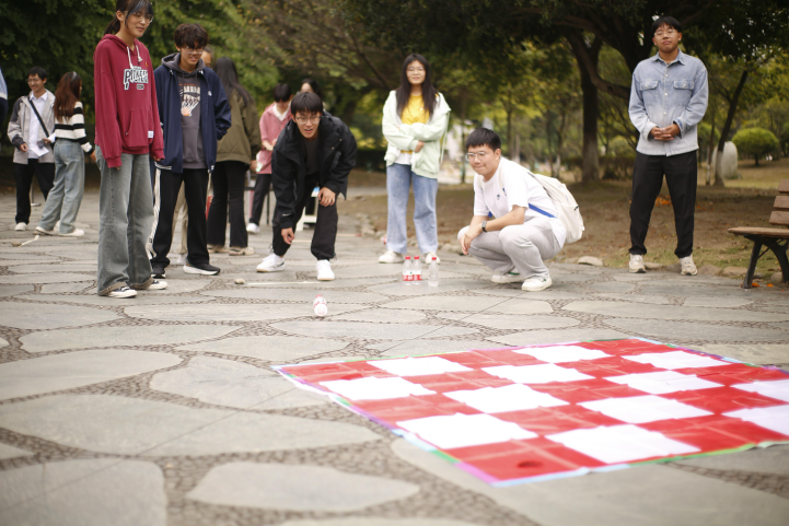 随后,同学们前往不高山小广场,开展包括投壶、竞速井字旗、两人三足、主题知识问答、拔河等在内的素质拓展活动。活动设计趣味性与理论性双向并行,收获同学一致好评。