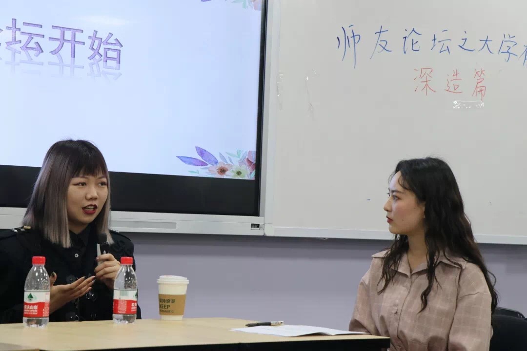 活动开始,主持人用简洁的语言向在场的同学们介绍了我们的嘉宾。随后,首先给我们分享的是徐秀珍同学,徐秀珍同学针对保研的政策及内容给同学们做了介绍与讲解,其中还专门介绍了3+2+3这一保研政策。此外,徐秀珍同学给我们未来的学习生活提出了以下三点建议:1、学习上有好的成绩排名很重要,这是一个硬性条件,会对你以后的评优保研起主要作用。2、目前各行各业对英语的要求越来越高,所以一定要学好英语。3、多姿多彩的大学生活中,我们也要在空余时间积极参加学生工作和比赛项目,这样有利于锻炼自己的能力,这些建议真是让我们受益匪浅。