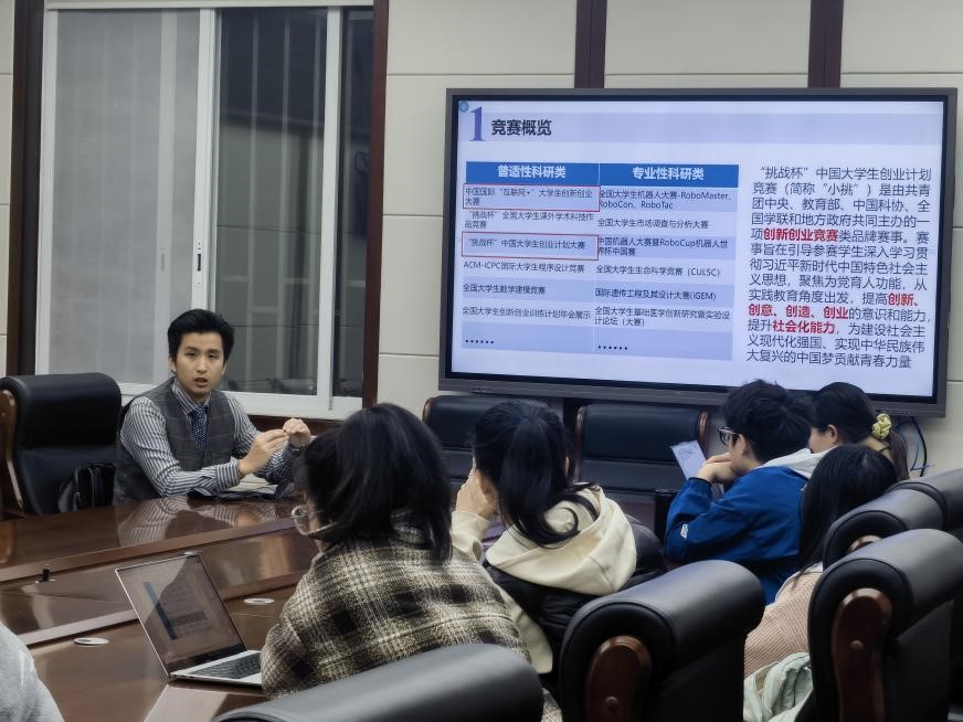 3月18日下午15:00,我院10支参赛队伍负责人依次进行5分钟的答辩。王天泽副教授结合往届“挑战杯”项目的评价经验,以评委老师的角度围绕各项目内容和逻辑讲解方面提出修改建议。陈意教授结合自己对于本学院学科内容的理解,针对项目原理、产品落地、推广应用等方面为各参赛队伍指出项目改进的方向。同时,两位老师模拟“挑战杯”答辩现场,让同学们提前感受并适应答辩流程。