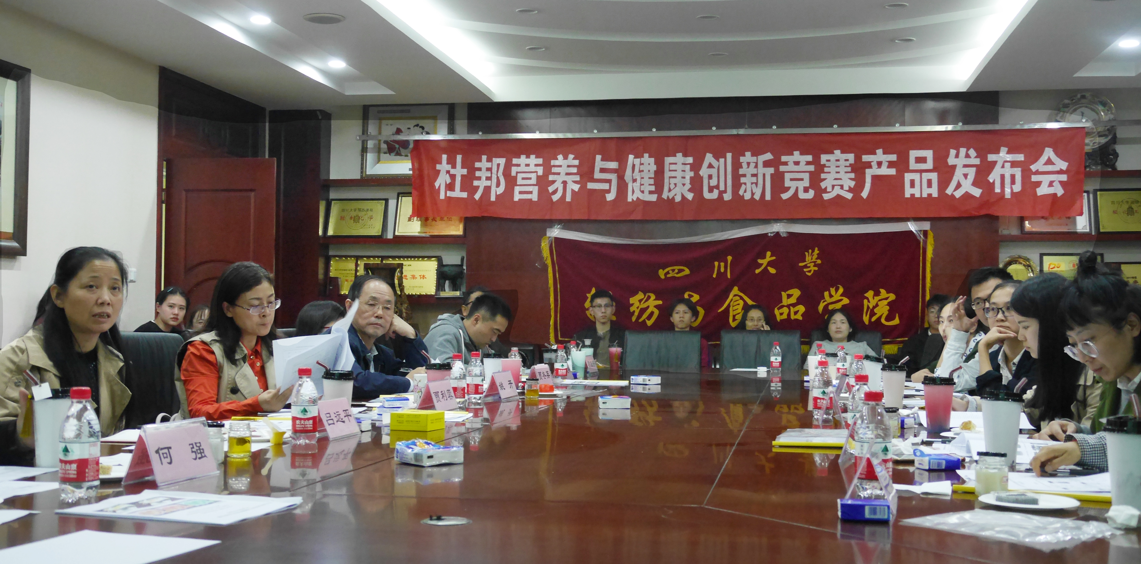 2018年10月12日晚上7点整,由四川大学轻纺与食品学院举办的“第二杜邦营养与健康两岸学生创新竞赛产品发布会”在望江校区皮革楼209会议室成功举办。何强教授、吕远平教授、贾利蓉教授、姚开教授、贾冬英教授、赵志峰副教授、吴正云副教授、卜迁副研究员、段飞霞老师、任尧老师、董怡老师、吴艳萍老师、张佳琪老师、邓莎老师及学生工作办公室王舒灏老师等作为评委出席了此次产品发布会。